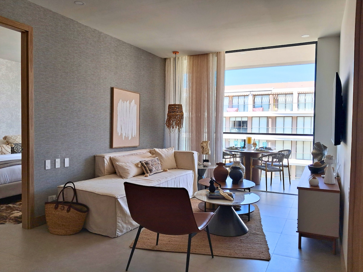 El apartamento está totalmente amoblado, diseñado para brindar confort, elegancia y descanso. Cuenta con espacios luminosos, ventilación natural y grandes ventanales que permiten disfrutar del sonido y la brisa del mar en todo momento. Habitaciones cómodas y acogedoras Sala moderna con vista directa al océano Cocina equipada para estadías cortas o largas Balcón con vista frontal al mar