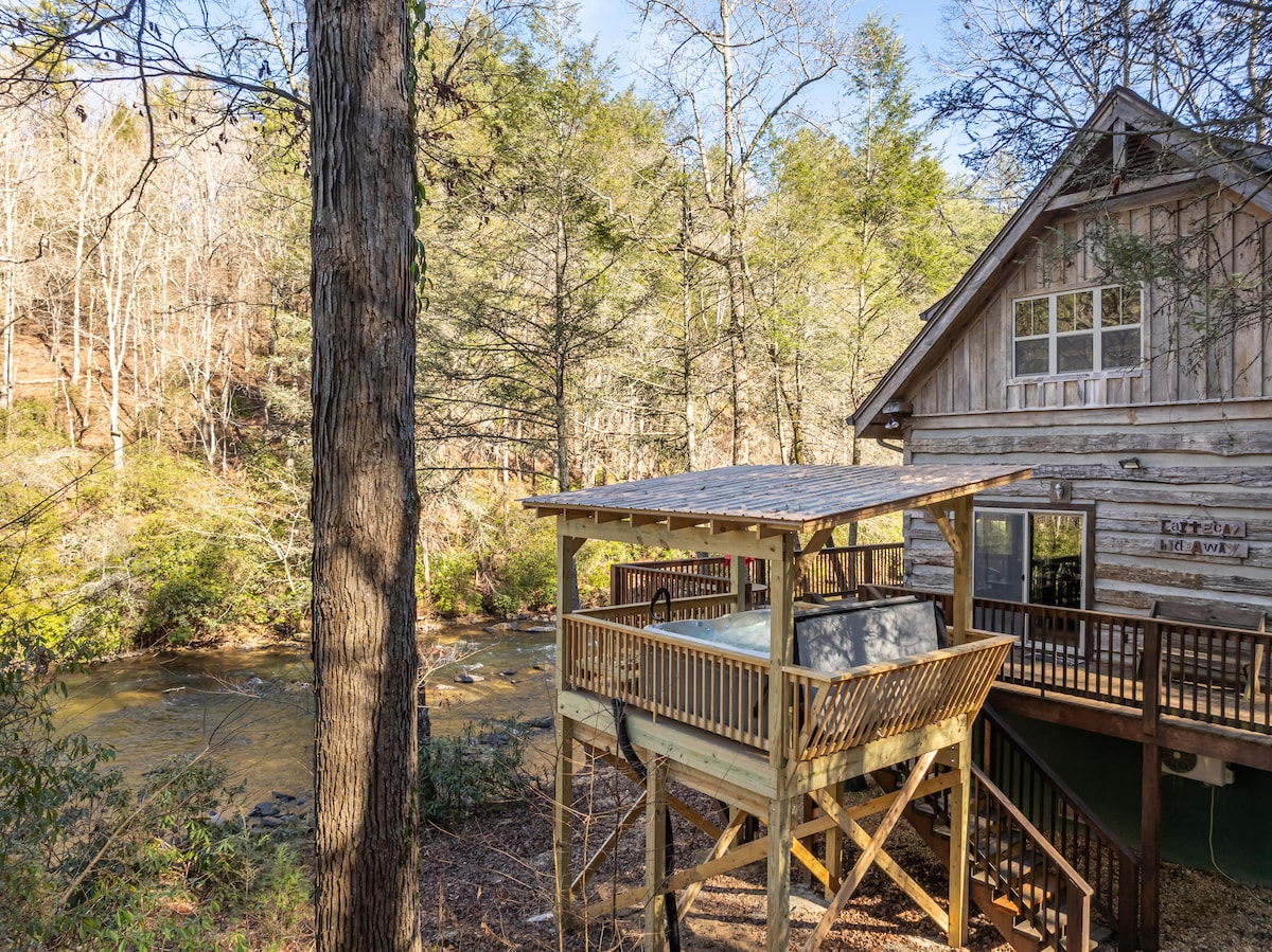 AYCE Creek is a Cabin located in the Coosawattee River Resort, only minutes from downtown Ellijay and award winning wineries. The location is incredibly quiet and peaceful with everything you need to relax and unwind. This Cabin is perfect for families, romantic getaways, or a friends retreat. Shops and restaurants are abundant in Ellijay. As our guest you will have access to all of the resort amenities. The property has a hot tub, games, music and so much more, we hope you enjoy!