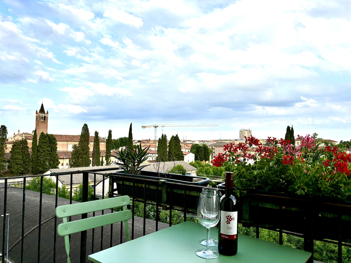 Habitación con terraza y vistas al castillo en el centro de Verona