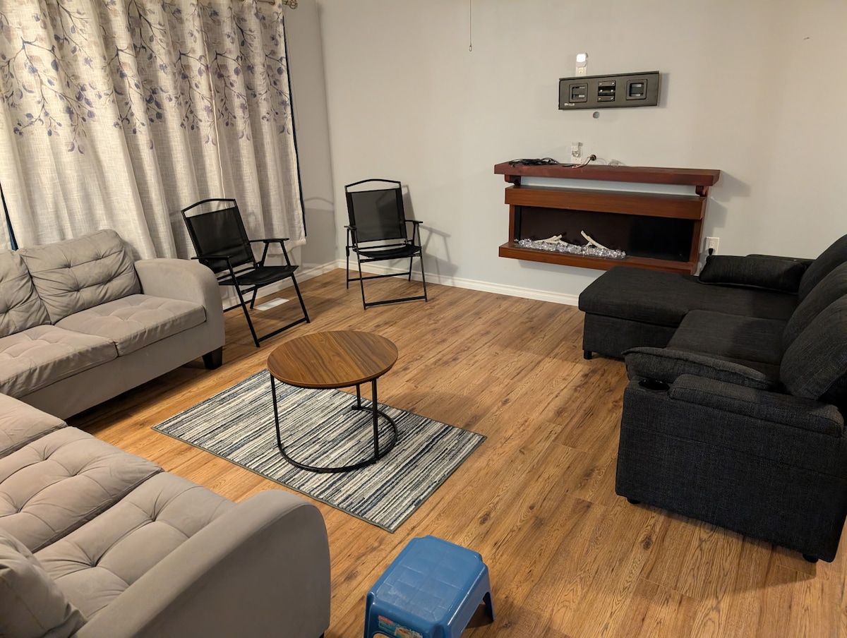 Bienvenido a nuestra encantadora suite en el sótano, perfecta para viajeros, parejas o profesionales. Disfruta de una entrada privada, un dormitorio acogedor, un baño completo, una sala de estar amueblada y una cocina totalmente equipada para tu comodidad. La lavandería con lavadora y secadora añade una comodidad adicional. Ubicado a solo 5 minutos del aeropuerto de la ciudad, este espacio ofrece comodidad, privacidad y fácil acceso a las atracciones locales. Reserva tu estancia hoy mismo para disfrutar de un retiro tranquilo y cómodo. ¡Estamos deseando recibirte!