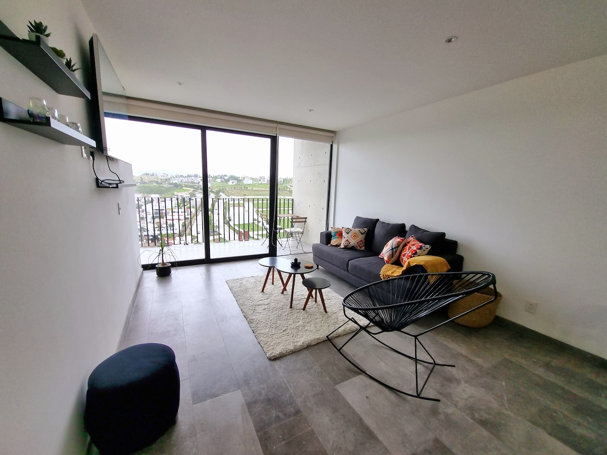 Este lugar único tiene su propio estilo. Departamento en la zona más exclusiva y moderna de Puebla con vista panorámica al Puebla Moderno, en un espacio privado acogedor a unos pasos del centro comercial, Museo Barroco, Parques, entre otros. Disfruta tu estancia con todos los espacios dinámicos sanitizados para tener un momento agradable, así como lo necesario para poder disfrutar y relajarte en estancias cortas o largas. Haz uso de nuestras exclusivas amenidades pensadas en tus necesidades.