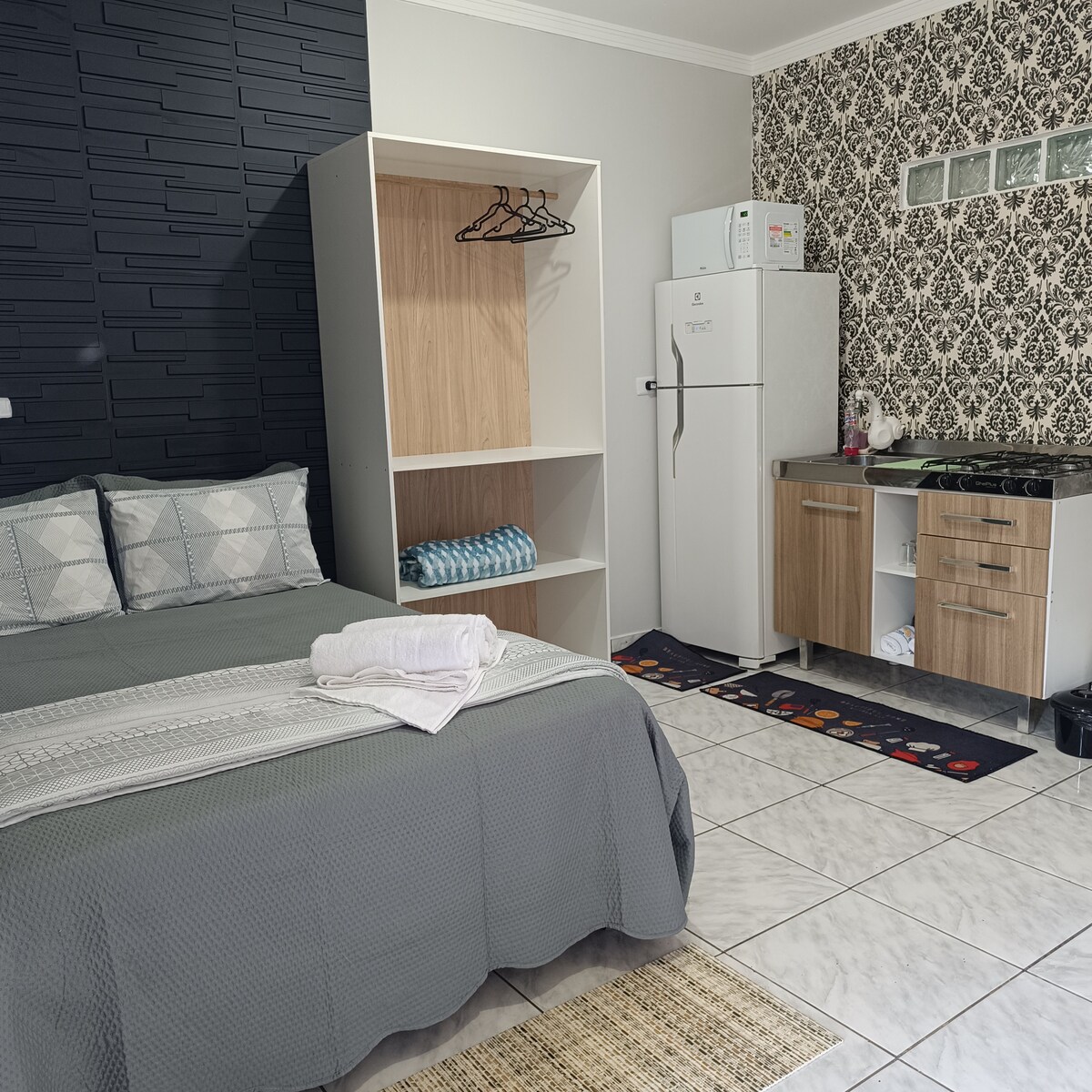 Nosso espaço, disponhe de suíte mobiliada com cozinha acoplada, possuindo tudo que você e sua família precisam para sua hospedagem. Com preço acessível. Localizado entre as faculdades Fag e Univel, meia quadra da Av. Brasil. Próximo a mercados e farmácias, e a 500 metros do eco parque oeste e Cisop. Possui roupa de camas, toalhas de banho, todas higienizadas, travesseiros , cobertores. Venha se hospedar conosco e conferir !