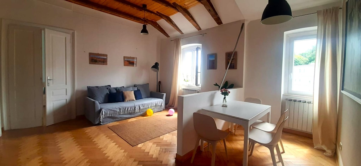Mansarda luminosa y espaciosa con una terraza dominante, con vistas a una de las plazas históricas de Trieste y su majestuosa sinagoga. Rodeados de tiendas de comestibles, tiendas, cafeterías, estamos a solo un paso de la animada Viale XX Settembre, el Gran Canal y el histórico Narodni dom de la comunidad eslovena. Características de la terraza: sistema de audio completo en la sala de estar, sistema de aire acondicionado nuevo, el dormitorio tiene un techo bajo, pero una vista abierta a las estrellas altas. Ideal para parejas y otras personas amigables :)