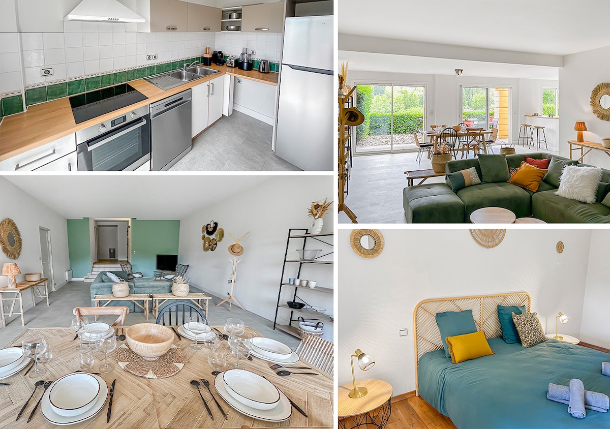 🌾Un nido de tranquilidad, en el corazón del campo🌾 Esta casa de campo de 320 m² ha sido diseñada para combinar comodidad, espacio y amabilidad. Incluye 4 suites para padres, un dormitorio, una sala de estar luminosa, un gran comedor y una cocina equipada. Piscina interior, jacuzzi con vistas, billar, bolera: todo está reunido para relajarse y compartir buenos momentos. Ideal para estancias familiares, con amigos o para acoger seminarios y retiros en un entorno tranquilo.