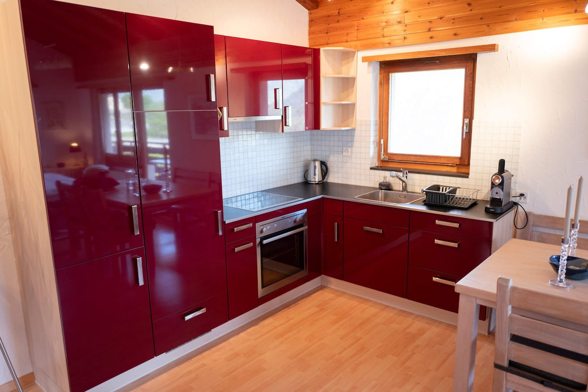 Moderno apartamento construido en el pueblo de Litzirüti (1460 m), que pertenece a Arosa. Para llegar a Arosa, hay un trayecto de 7 minutos en auto o 1 parada de tren. La estación de tren está a solo un par de minutos a pie, y te lleva a la parte inferior de la estación Weisshorn Cable Car Valley o al centro de la ciudad de Arosa, donde puedes encontrar tiendas de comestibles y tiendas. La casa está muy bien situada con vistas al valle, incluyendo una bonita cascada y senderos para caminar.