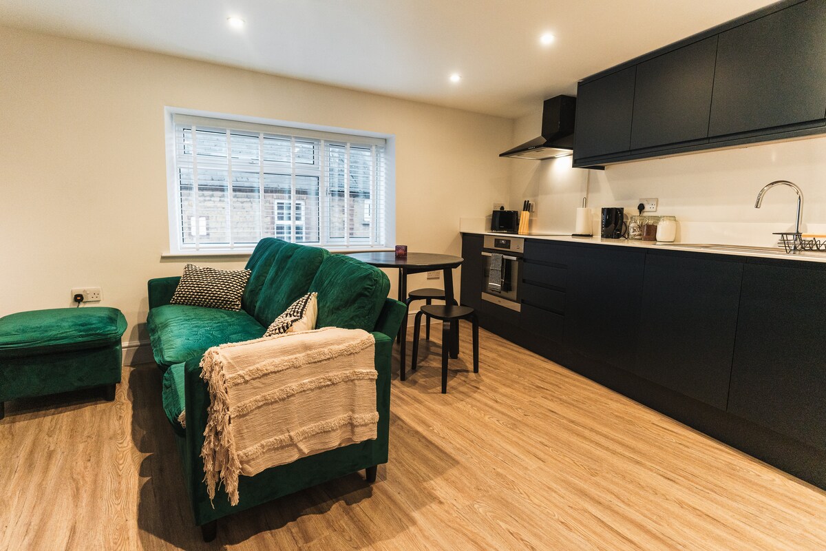 El estudio en el Old Silk Barn es un espacio recién creado para dos personas situado literalmente en Bruton High Street con su restaurante con estrella Michelin, numerosas galerías de arte, museo, tiendas y restaurantes. El espacio consta de una cocina de lujo y barra de desayuno, sala de estar, ingeniosa cama plegable italiana y está amueblado de manera muy cómoda y elegante. El apartamento con calefacción por suelo radiante, ofrece un gran baño, TV, lavadora/secadora, lavavajillas y todo lo necesario para una cómoda estancia independiente.
