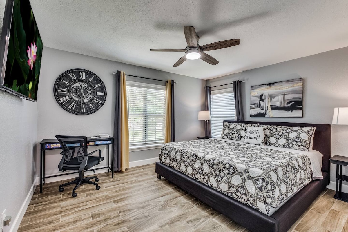 • Pasea por un patio trasero vallado con jardín y disfruta de un registro privado sin llave. • Cómodo acceso a las excursiones The Pearl, RiverWalk, Medical Ctr y Hill Country. • Duerme hasta tarde en tu lujoso colchón de espuma viscoelástica y luego disfruta de tu café en el patio o junto al fuego. • ¡Ideal para huéspedes que buscan calidad, lunas de miel o aniversarios! • Nevera pequeña + Keurig + microondas + wifi rápido. • • ¡Excelente aire acondicionado! ¡Limpieza meticulosa! • ¡Disfruta de nuestro fogón! ¡Danos un corazón arriba a la derecha!
