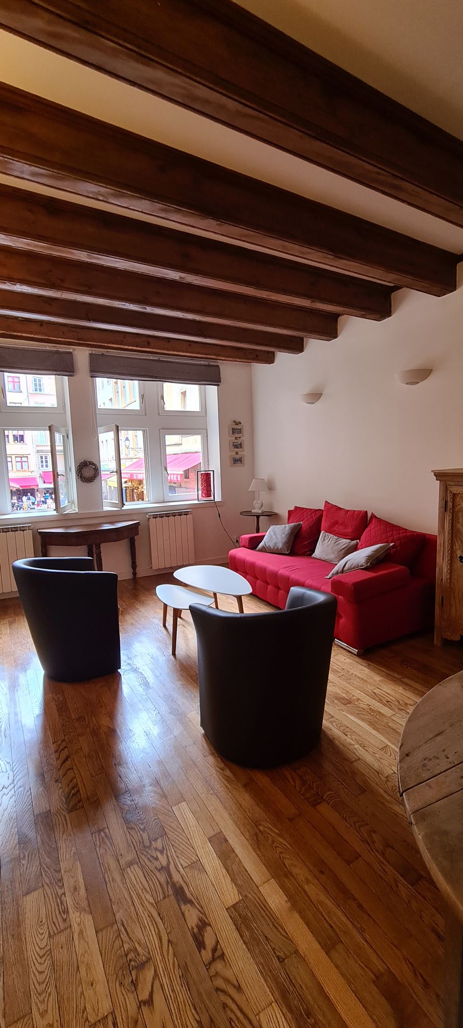 Venga a relajarse en este apartamento monacal, con carácter y encanto, en la torre de un edificio que participa en el patrimonio cultural de Lyon. Este pequeño dúplex , típico de este barrio renacentista, se encuentra en una cuarta planta sin ascensor. Ofrece una vista de 360° del barrio histórico del centro de Lyon. Estaremos encantados de recibirle en este apartamento muy «francés»: vigas a la vista, azulejos barnizados y muebles antiguos…Barrio animado: restaurantes, bares, …
