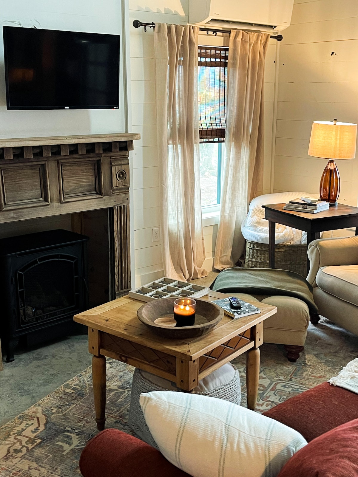 La tienda es tan única como acogedora, con todas las comodidades de tu hogar y una sala de estar en el garaje que es perfecta para las noches de juego. La casa está a solo unos minutos de la ciudad, ubicada en 4 acres con vistas a hermosos paisajes. 1 dormitorio y 1 baño, esta casa está recién reformada con todas tus necesidades esenciales con conexión para lavadora/secadora, cafetera, acceso a wifi, juegos y chimenea al aire libre. Con mucho espacio de estacionamiento fuera, el garaje también ofrece un área de 2 bahías.