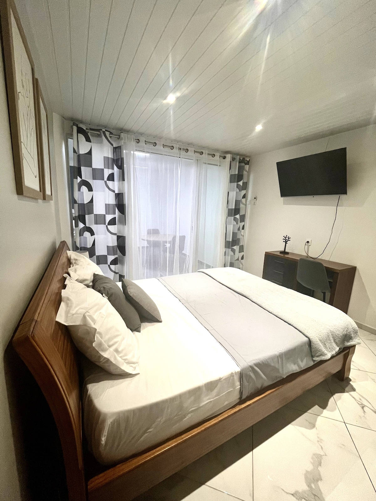 En el barrio de la Source de Baduel - muy popular en Cayena, disfrutará de un elegante alojamiento privado de 65 m2. Te alojarás en la capital, a la vez que estarás lejos del ajetreo y el bullicio del centro de la ciudad. Disfrutará de unas vistas despejadas y una gran tranquilidad gracias al tercer y último piso del apartamento. Lo mejor de este alojamiento: una magnífica altura del techo de 3,60 m, un dormitorio y su gran vestidor con ropa de cama de calidad, y una terraza con vistas a la naturaleza.