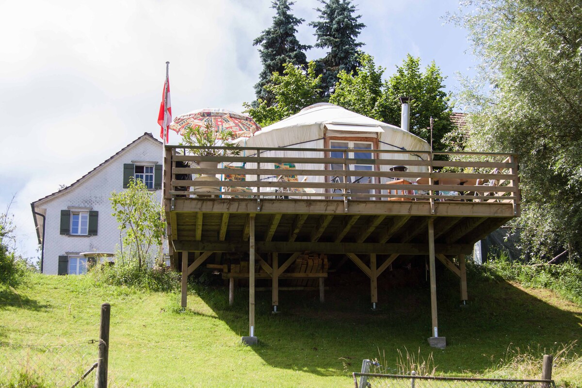 El alojamiento especial para la naturaleza y los románticos. Una noche ligeramente diferente en la bicicleta Ferienland-Thurgau-Bodensee, Suiza. Jurte para no fumadores de 5 m de diámetro = 20 m2 está cuidadosamente amueblado. Aquí puedes dejar que tu alma cuelgue. La terraza tiene vistas al campo y al paisaje de la niñera. Para llegar correctamente, te recomendamos reservar al menos 2 noches. Nights Bischofszeller Rosen und Kulturwoche Sa. 20/6/26 to Sun 6/28/26 Vacaciones de invierno del 1 de noviembre al 28 de febrero