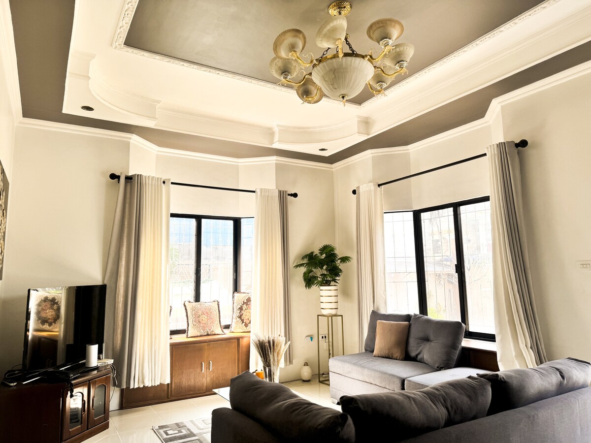 🌿 Entire 550sqm property with a big garage & yard, privately yours! 🏡 Cozy 3-bed, 3-bath family house Fully Air Conditioned! 🛌 Sleeps 7-10 🅿️ Garage for 4-6 cars 📍Hensonville Subd. Angeles City 🍹 Outdoor bar w/ grill & karaoke, Netflix ❄️ Fully air conditioned rooms & Living Room (new!) 🚀 Fast Wi-Fi, WFH ready 🏙️ Near Clark airport, SM Crk,Koreantown,walking st. 🍳 Complete kitchen + dining 🧂 Cooking basics & condiments ☕ Welcome coffee ✔️Towels, soap, shampoo, conditioner.