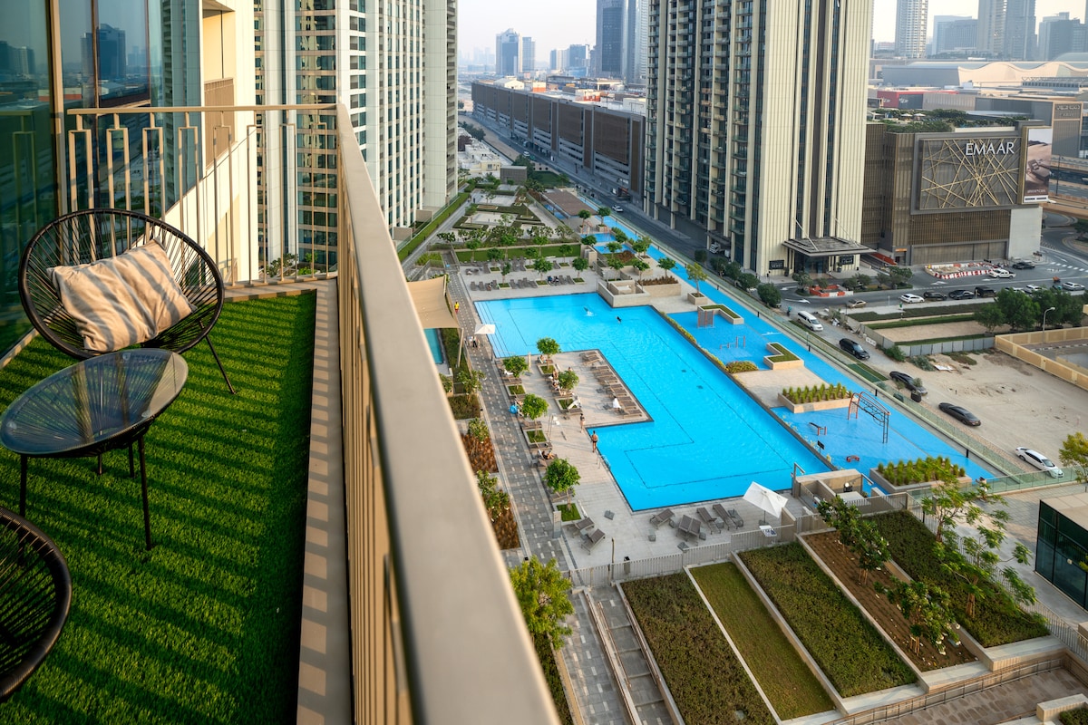 Arthouse 2BR con vistas al Burj Khalifa, piscina y gimnasio