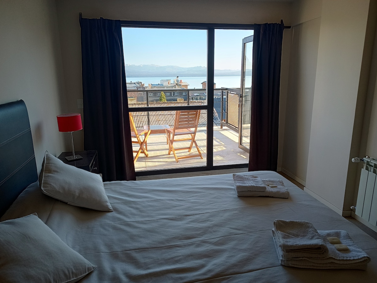! Departamento con inmejorable ubicacion a pasos de Cento Civico.Amplio y luminoso, preciosas vistas al Lago Manuel Huapi.Muy fácil acceso. Habitación con cama matrimonial y balcon con preciosas vistas, baño completo con bañera , cocina completa, living comedor Si eres un nómada digital, teletrabajas y necesitas buena velocidad de internet , el depto cuenta con fibra óptica y una velocidad de 330 megas