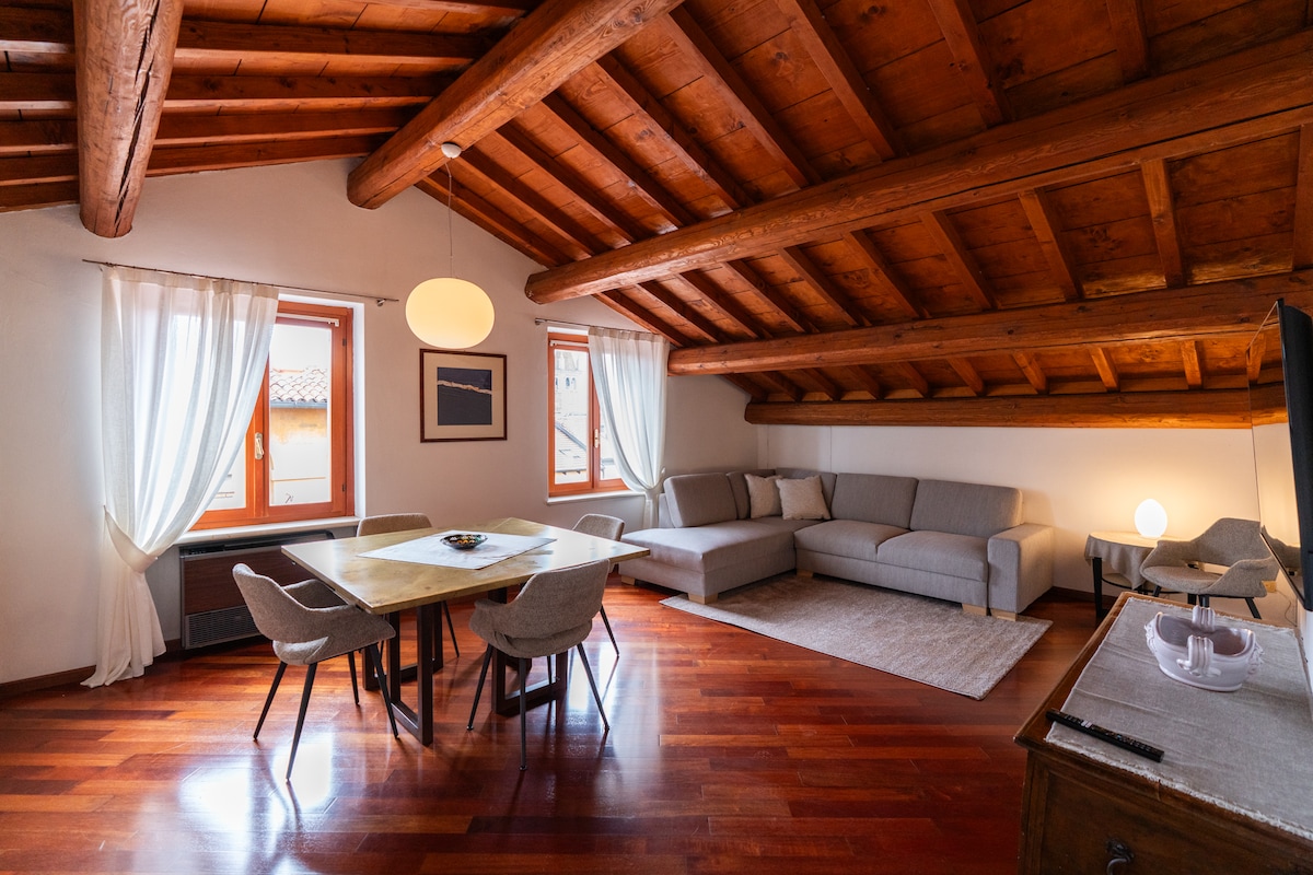Ático en el centro histórico – A pocos pasos de la Arena de Verona. Hospédate en el corazón de Verona, cerca de las principales atracciones culturales. Este apartamento de dos niveles cuenta con un amplio dormitorio con cama king-size y topper de calidad, además de un elegante baño con artículos de tocador de lujo. En la planta superior, disfruta de una luminosa área de concepto abierto con cocina equipada y un elegante salón.