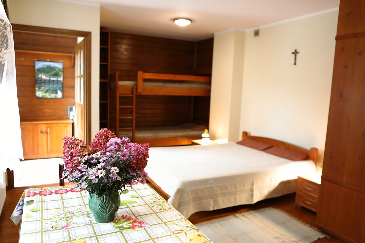 Un departamento con una hermosa vista de los paisajes de montaña de Pieniny, ubicado en el centro de origen de Szczawnica, en una zona tranquila cerca del Parque Superior. El departamento consta de 3 habitaciones (2 dormitorios independientes + sala de estar con sofá cama doble doble), balcón, cocina equipada y baño. La ventana del dormitorio da a la pista de esquí "Palenica", que está a unos 500 metros del apartamento.