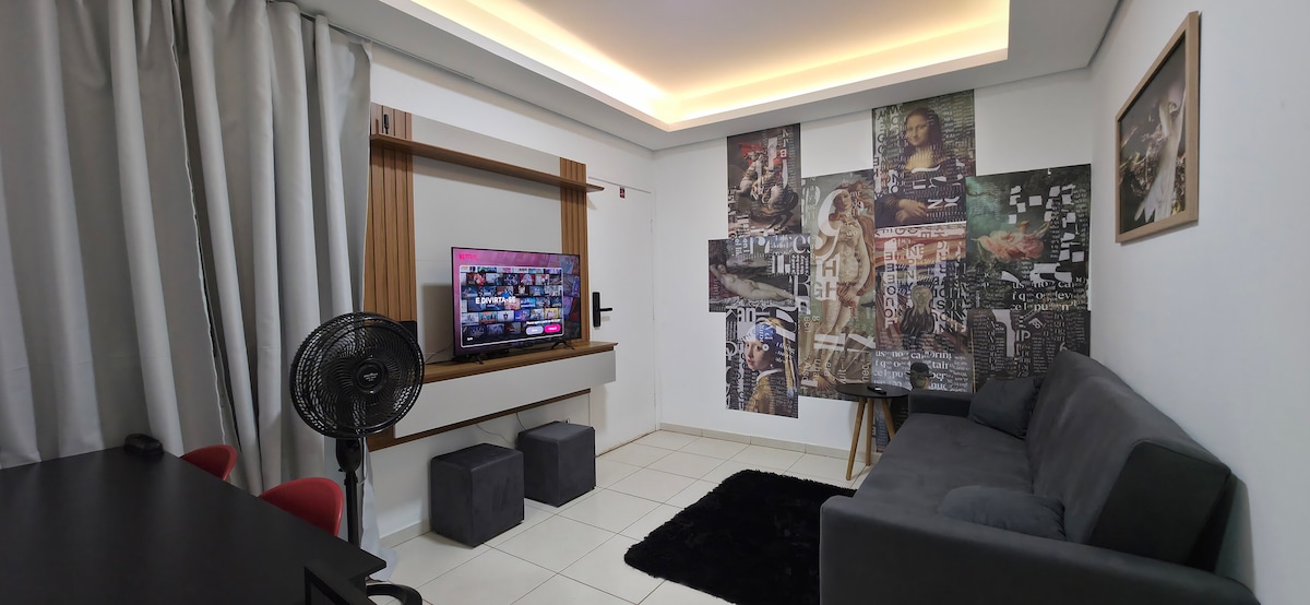 ¡Alójate en Léo Home South! Departamento reformado con muebles nuevos, aire acondicionado, garaje cubierto y una cocina completa equipada con sartenes antiadherentes (Philco). Ubicación privilegiada: a 5 minutos de Uberlândia Shopping y cerca de casas de eventos. En el condominio, todos los miércoles, hay feria con frutas frescas, verduras y pasteles. ¡Tu hogar lejos de casa en Uberlândia!