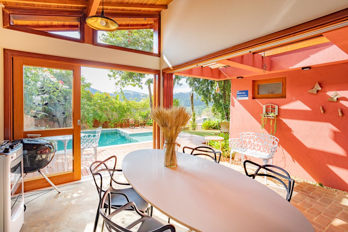 La casa de campo está ubicada en la ciudad de Lindoia, el interior de São Paulo está bien ubicado en una finca en medio de la naturaleza con una vista privilegiada a las montañas, de fácil acceso por SP-147. El proyecto innovador es de concepto abierto, la cocina es moderna y está equipada, integrada en la zona gourmet con barbacoa y un maravilloso SPA con aire acondicionado.
