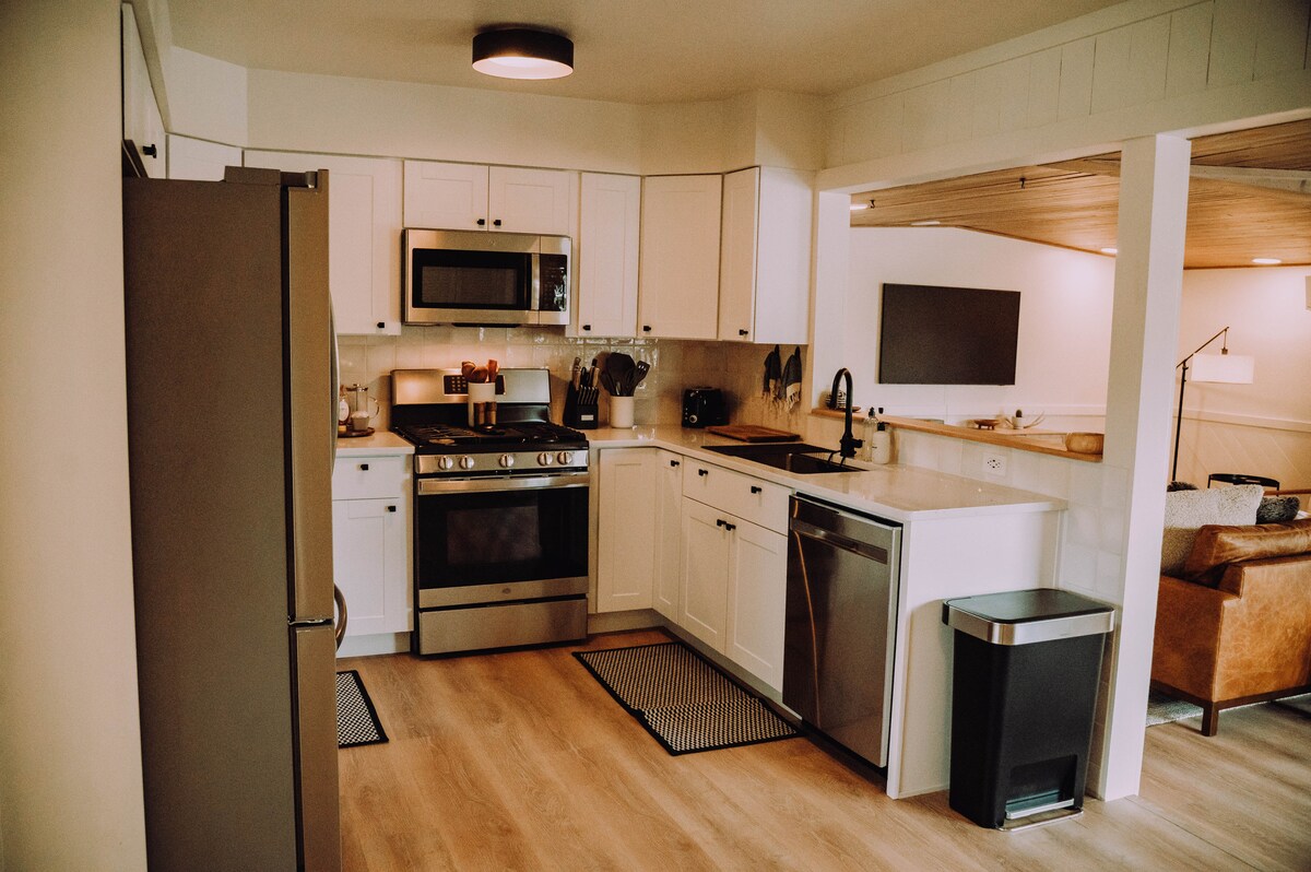 Esta acogedora cabaña tiene tres cómodos dormitorios, un baño, lavadora/secadora y una cocina totalmente equipada. La planta abierta, los techos abovedados y la gran mesa de comedor hacen de esta casa una opción espaciosa para tu familia o grupo. A solo 5 minutos caminando del centro de la ciudad, donde hay muchos restaurantes, tiendas y actividades comunitarias excelentes. El jardinero vive justo al otro lado de la calle y está disponible para ayudar con cualquier necesidad de alojamiento que pueda surgir o cualquier consejo de viaje para las actividades locales.