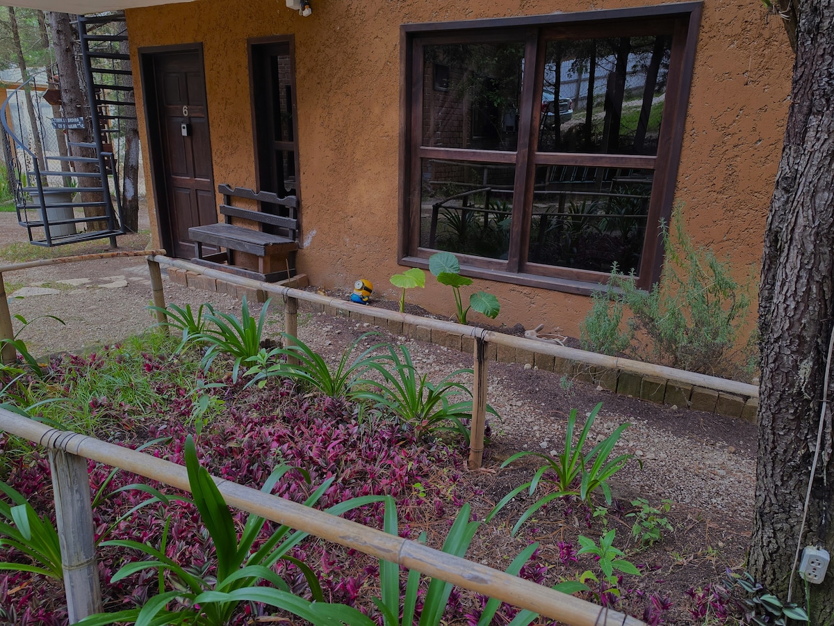 Cabaña luminosa, cama King, con calefacción de gaz. Podras disfrutar ahi la naturaleza, canto de pajaros, ardillas, estando a solo 2 kilometros del centro. Es una area tranquila, de media hectarea en donde podras caminar y sentarte a la sombra de un arbol para leer un libro o descansar. Muy accesible, cuenta con 2 entradas, 1 por el periferico para evitar el trafico y la otra caminando. Caminando son 15-20 min. y en carro 7 minutos hasta la iglesia de Guadalupe (inicio del Centro Historico).