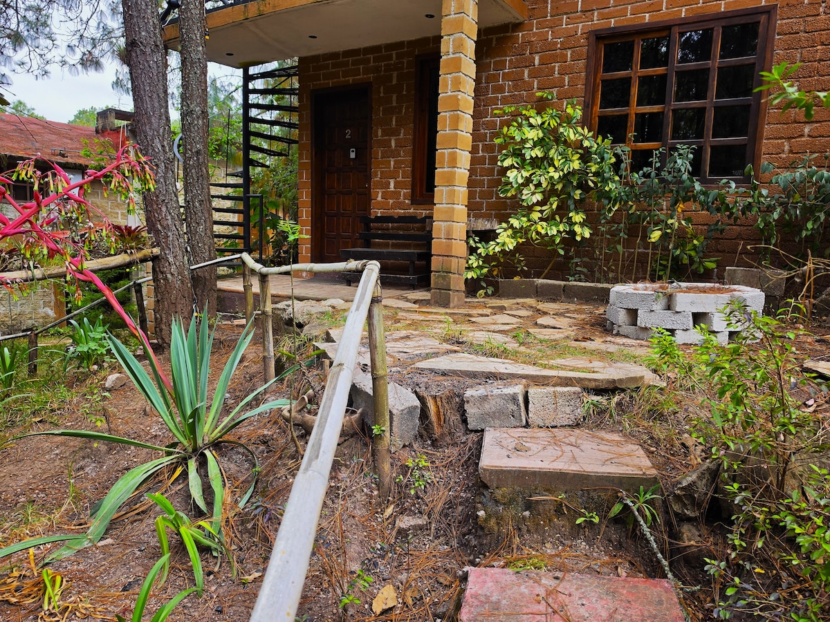 2 - Cabaña con vista a la montaña, y jardin.