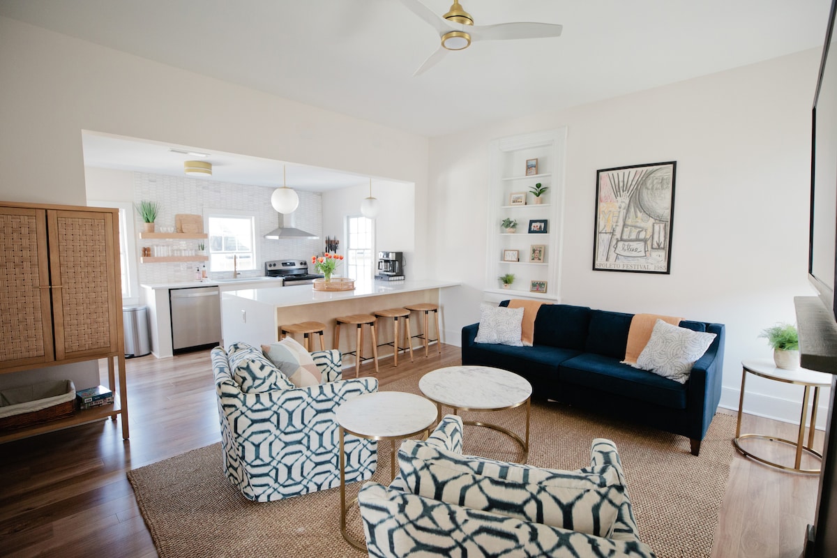 Un espacioso refugio (780 pies cuadrados) en Park Circle: elegante, amable y encantador. Nueva casa de huéspedes construida a medida y diseñada con un guiño a la clásica influencia arquitectónica de Charleston: espacio interior-exterior de concepto abierto con un gran porche sombreado donde sopla suavemente una brisa perpetua de la costa no muy lejana durante todo el año. Los visitantes regresarán de su viaje profundamente restaurados y revividos, después de haber experimentado un alojamiento bien equipado.