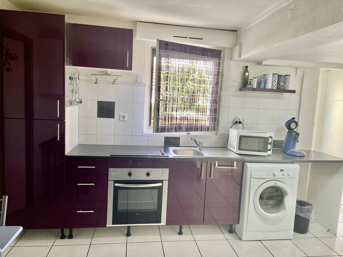 Alojamiento independiente con cocina equipada, salón con convertible, dormitorio para 3 personas Situado en el RC de mi casa, a 5 minutos a pie del hospital norte y de los autobuses para llegar a Clermont Ferrand, a 15 minutos a pie del centro del pueblo,de un supermercado y de las pistas de Ladoux. A 20 minutos en coche de las cadenas de los volcanes, del Puy de Dôme, volcán de Lemptegy, Vulcania, Eaux de Volvic, Royatonic, Aventura Michelin, gran mercado y Zénith d 'Auvergne, Casino Royat y Châtelguyon, a 45 minutos de Vichy