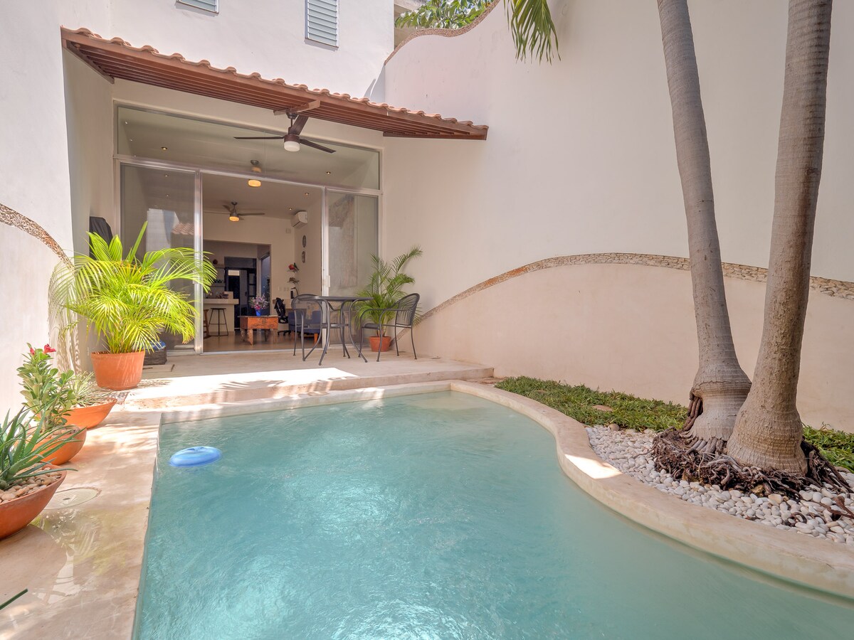 Private home with a great balance of colonial and modern. Perfect for one to two people who enjoy indoor/outdoor living. The house has amazing airflow with 16 foot ceilings throughout and an air conditioned bedroom. The patio and private dipping pool make the house a perfect refuge from the hustle and bustle of downtown. Only 1 block away from La Plancha Park, Merida’s new “Central Park” and 2 blocks from the start of Calle 47 Ruta de Gastronomia, the newly pedestrinized restaurant district.