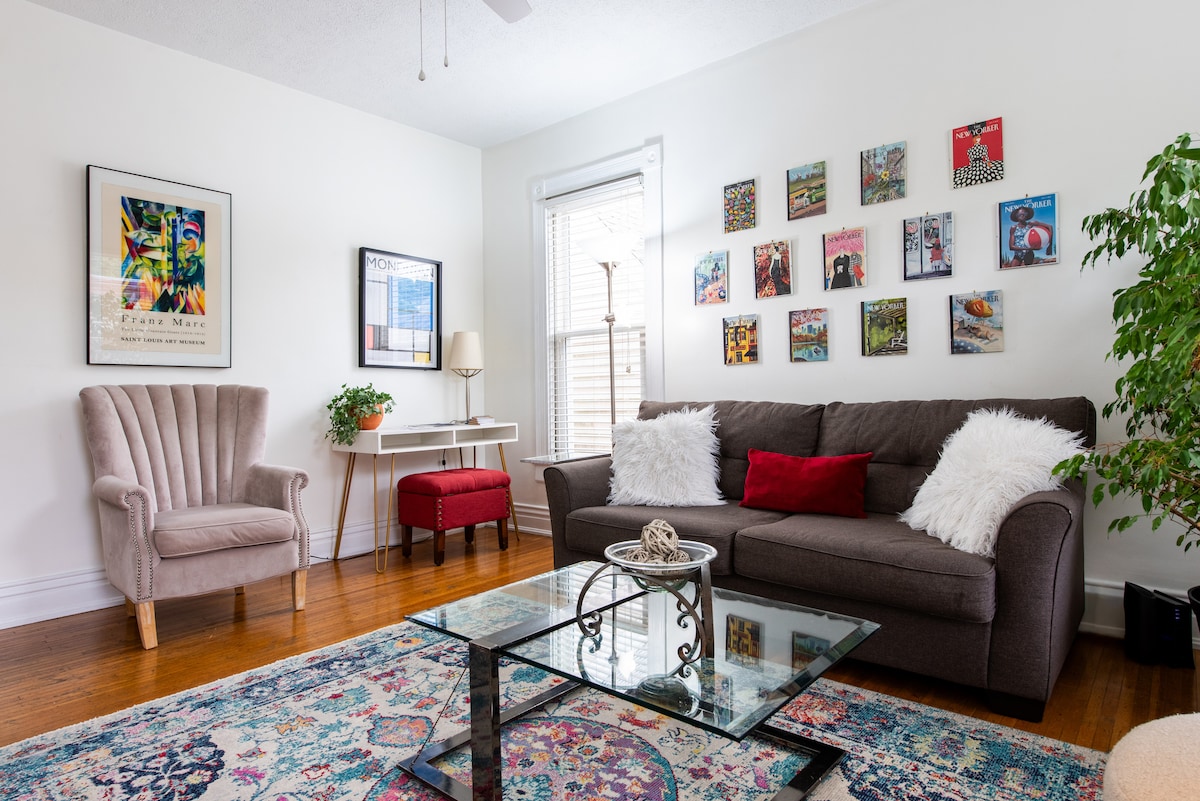 Awesome Sweet Spot of a Louisville Location! This PRIVATE APT. with SELF CHECK IN + FREE PARKING is in a beautiful, safe neighborhood in the historic Highlands. Quick 2-min walk to magnificent Cherokee Park OR charming Bardstown Road - a multitude of eclectic galleries, bars, restaurants & shops to explore! Conveniently (5-10 min) located to Churchill Downs, Downtown Louisville, Louisville Seminary, NuLu, UofL, Bellarmine, Fair & Expo Center, Yum Center, Waterfront & the Airport⚜️