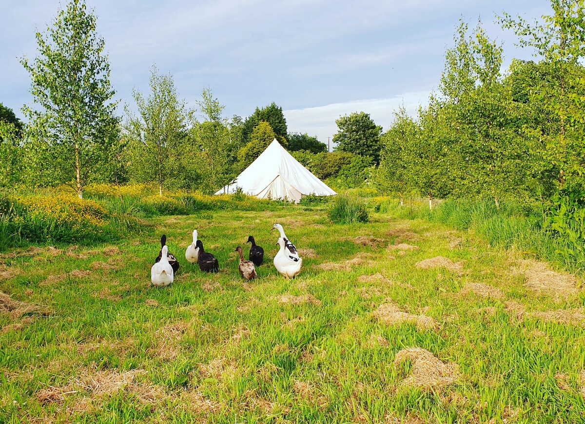 Cross Farm te invita a retirarte, restaurarte y revivir. Nuestra tienda de campaña se encuentra en un campo salvaje de 1 acre con impresionantes vistas a The Stoodley Pike. Despiértate con el amanecer sobre las colinas, el susurro de los árboles, el canto de los pájaros y la charla de las ovejas en los campos cercanos. Nuestra tienda de campaña Bell viene con una cama tamaño king, estufa, hervidor, nevera, sofá, ropa de cama, toallas y zapatillas, zona de estar al aire libre, inodoro compartido, ducha privada con productos de ducha ecológicos y cocina totalmente equipada en nuestro granero. Todo lo que necesitas para disfrutar de una estancia relajante.