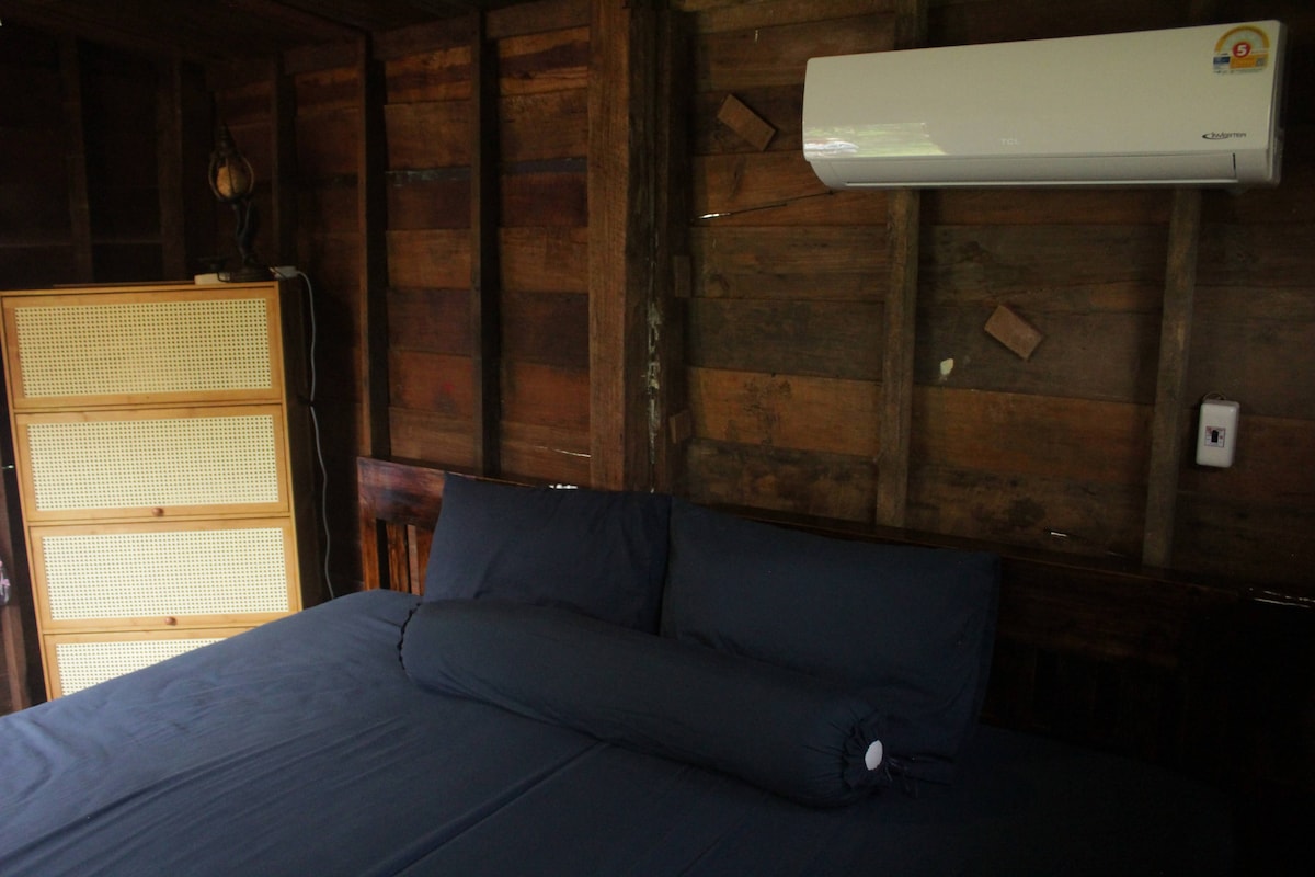 Nestled in the small village of Mea Na, in the green hills of Chiang Dao, the Baan Len room offers a warm atmosphere thanks to its natural wood design. This charming room consists of a comfortable main area, with a mezzanine equipped with a bed that can accommodate two children. On the ground floor is a patio, perfect for enjoying the fresh mountain air in the evening. Free parking right next to the bedroom entrance.
