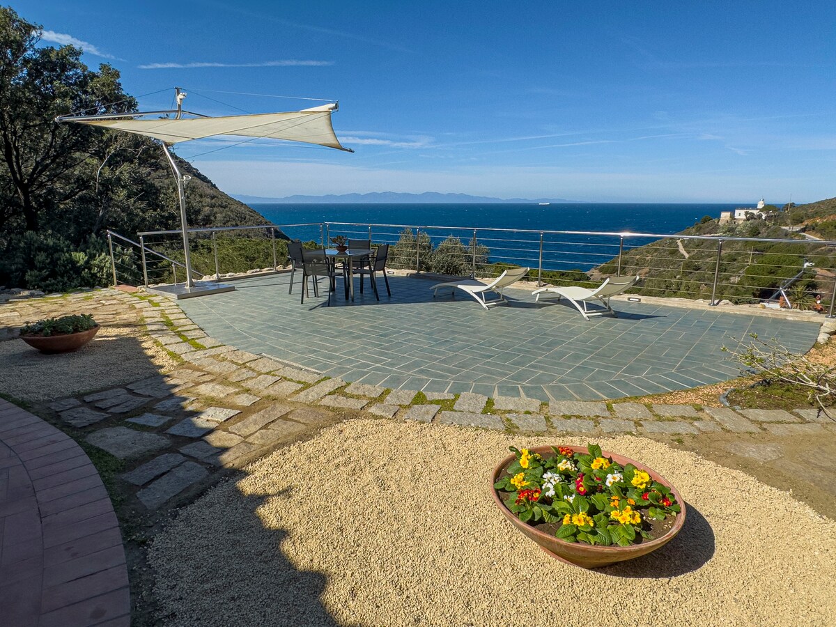 La Casa del Capitano se encuentra en la cima del Monte Grosso, en el Parque Nacional del Archipiélago Toscano. La ubicación es única en la isla y desde aquí tienes una vista fantástica de la ciudad de Portoferraio, Piombino, Córcega, Capraia y Gorgona. La casa fue restaurada durante un proyecto que duró varios años, en estrecha colaboración con el Parque Nacional y fue diseñada para ser autosuficiente y ecológica. Aquí se utiliza únicamente la energía del sol, sin tener que renunciar al lujo.