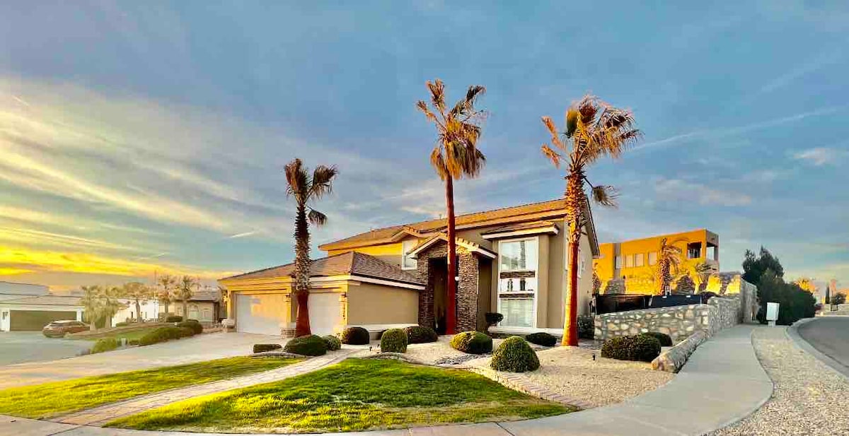 Hermosa casa moderna a estrenar. Piscina de agua salada climatizada y spa a pocos minutos de restaurantes y entretenimiento. ¡Disfruta del sol de El Paso en este oasis del desierto! La casa tiene capacidad para 6 personas. Preciosa cocina de chef totalmente equipada, hermoso dormitorio principal con enorme ducha a ras de suelo y bañera de hidromasaje, a 5 minutos de la I-10, a 11 minutos de Cielo Vista/The Fountains, a 18 minutos del centro de la ciudad, a 10 minutos de Ft. Bliss. **Envíanos un mensaje si tienes problemas para reservar**
