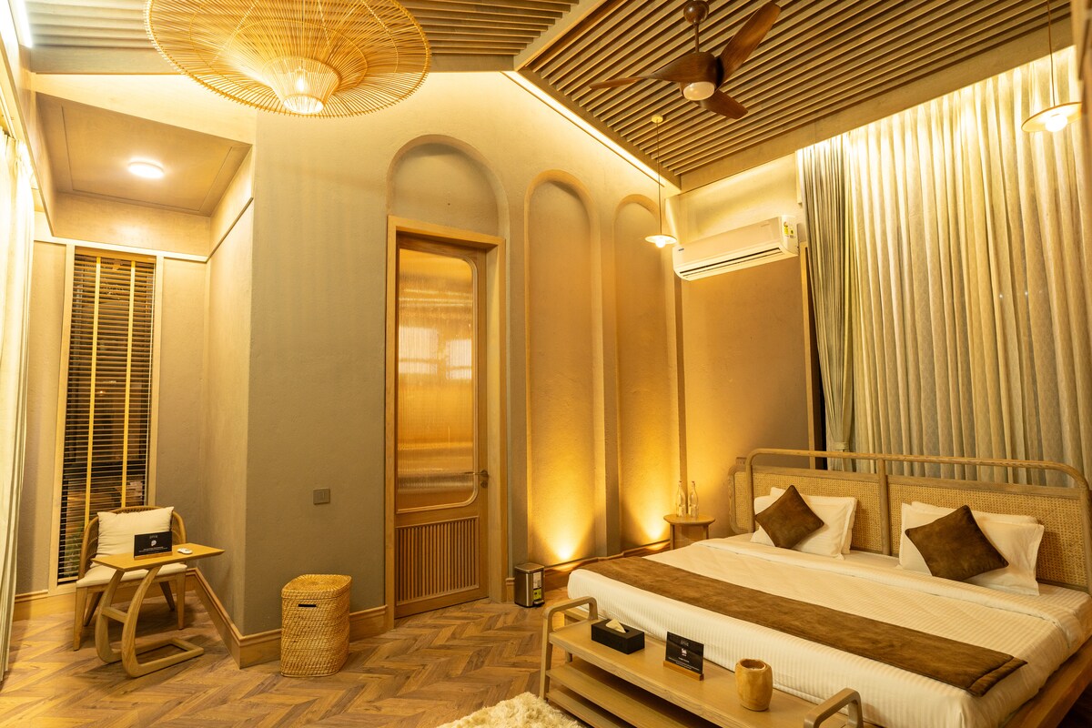Inspirado en Boho 2-BHK con piscina compartida | Apto para mascotas