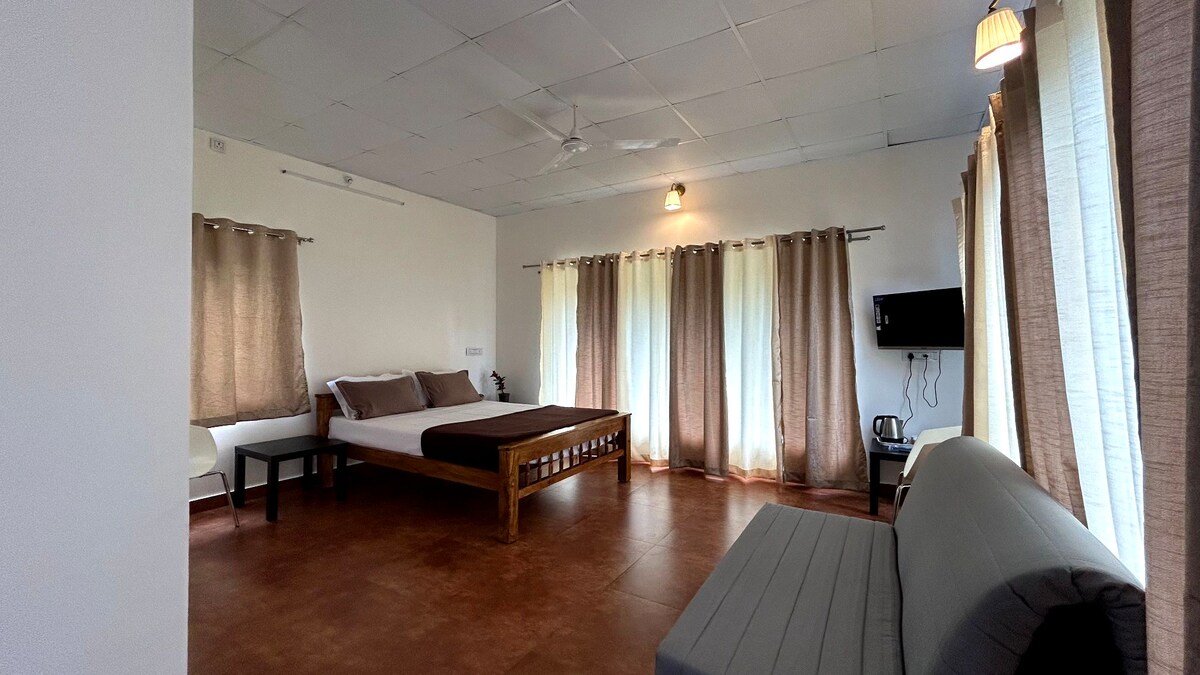 Escápate a nuestra acogedora casa de familia en el corazón de WesternGhats. Despierta con la belleza de las fincas de café y los arrozales. Disfruta del cálido abrazo de la vida del pueblo, con vacas para leche fresca y un perro amable para hacerte compañía. Nuestro edificio de invitados separado ofrece privacidad, mientras que te tratamos como si fueras de la familia. Deléitate con comida bufet fresca y casera con 6 horas de antelación y reúnete alrededor de la fogata por la noche. Da un paseo guiado por nuestra finca de café. Experimenta la verdadera esencia de la vida rural con nosotros