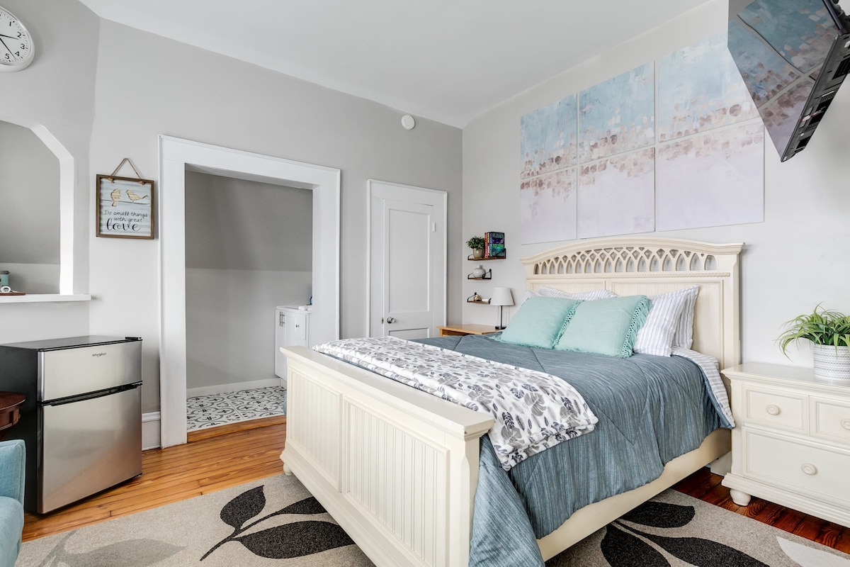 Descubre este lindo lugar, una opción ideal para escapadas románticas, viajes de negocios u ocasiones especiales. Este encantador apartamento cuenta con una cama tamaño queen, baño completo y comodidades modernas. Situado en una ubicación privilegiada de Richmond, tendrás fácil acceso al centro de convenciones, universidades locales, teatros, cervecerías y una vibrante vida nocturna. Relájate y desconecta en este condominio bien equipado, perfecto para crear recuerdos duraderos.
