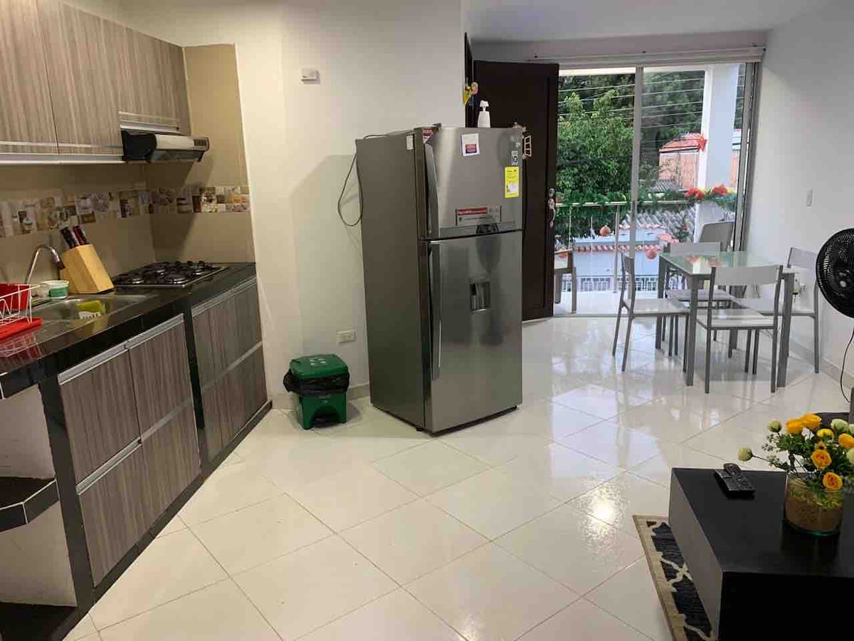 Disfruta de este moderno y comodo apartamento, totamente equipado, tipo loft, excelente ubicación, primer piso, entrada independiente, a 10 min aeropuerto, cerca a centros comerciales, supermercados, farmacias y gimnasios; a una cuadra de la Av. libertadores y transporte publico, cuenta con dos camas dobles, aire acondicionado, un baño con vestier , una bañera y un baño auxiliar, sala, comedor y cocina totalmente equipada, escritorio, zona de relajación, patio de ropas y zona de ropas.
