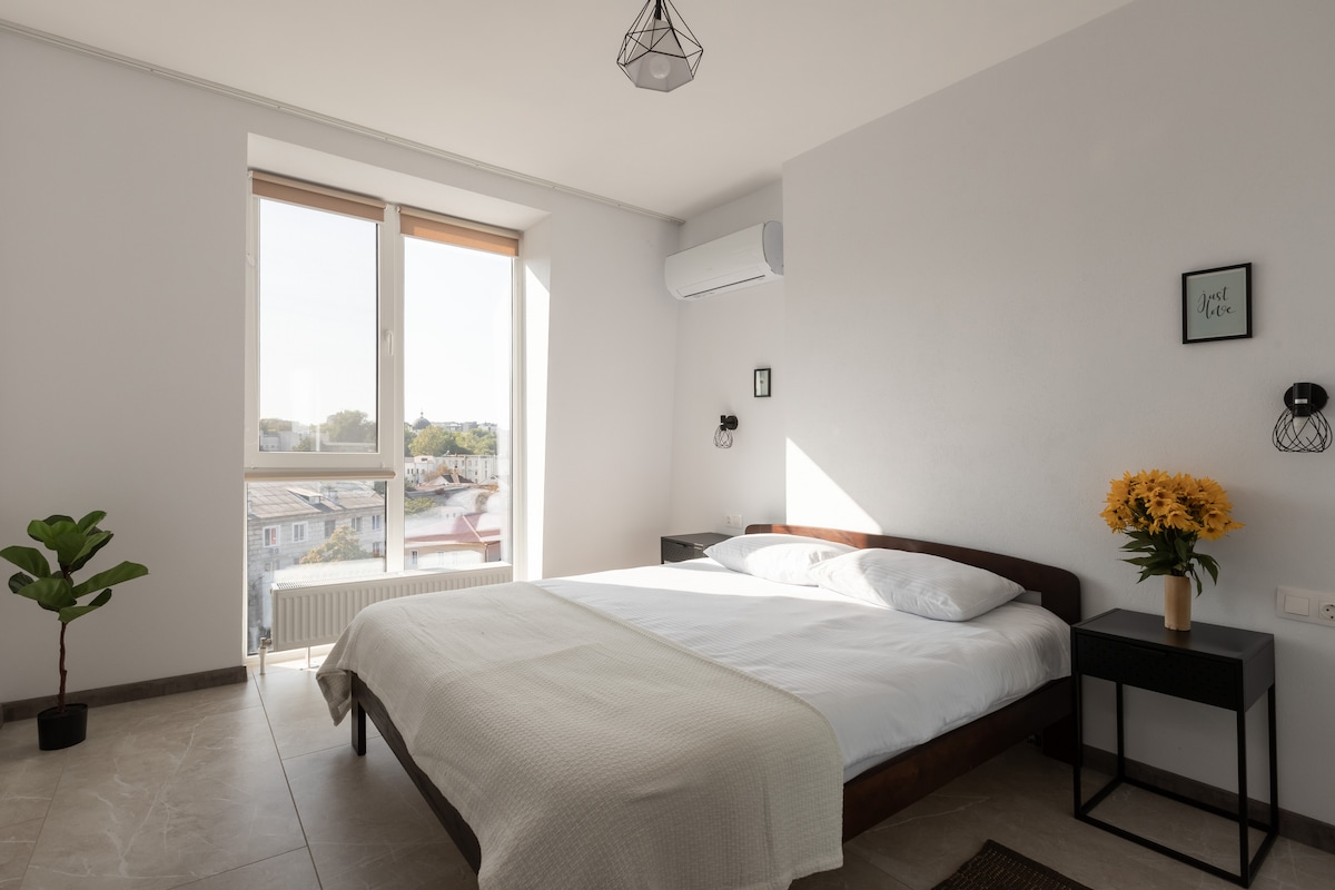 Bienvenido a GrandStay Apartments, el pináculo del lujo en el corazón ultracentral de Chișinău. Este apartamento de alta gama ofrece paredes de vidrio del piso al techo con vistas panorámicas del Parque de la Catedral, tres balcones privados y muebles de diseño. Disfruta de una cama tamaño king de primera calidad, una impresionante bañera en el dormitorio con vistas al parque y un baño elegante. Un gimnasio privado con terraza con vistas a la ciudad y un conserje dedicado completan esta experiencia exclusiva.