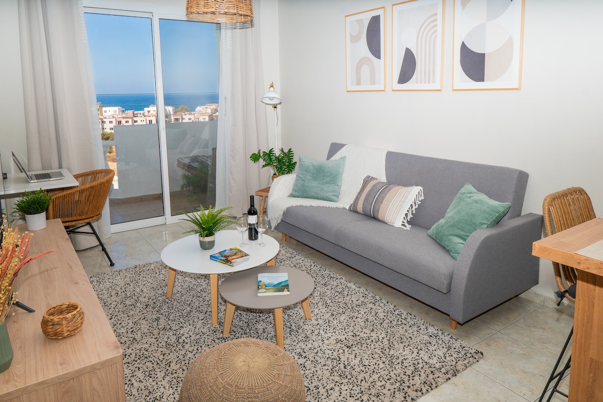 ¡Una cálida bienvenida al apartamento Diana! Un apartamento de 1 dormitorio y 1 baño recién reformado, acogedor y relajante, decorado con buen gusto, con impresionantes vistas al mar y situado en una ubicación ideal a solo unos minutos a pie de la playa y del casco antiguo de Pafos. Los huéspedes pueden disfrutar de la impresionante puesta de sol desde el balcón, lo que lo convierte en el lugar perfecto para relajarse.