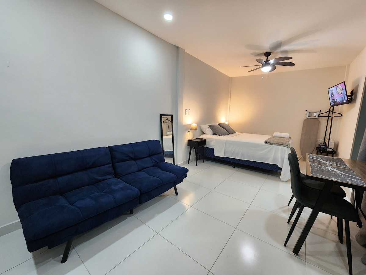 Bienvenido a tu acogedor refugio en San Pedro Sula. Nuestro estudio independiente se encuentra en Residencial Las Mercedes, un circuito cerrado muy seguro. Forma parte de una casa con otros tres estudios, ofreciéndote privacidad y comodidad en un entorno tranquilo. Perfecto para relajarte, trabajar o simplemente disfrutar de tu estancia, nuestro espacio está diseñado para que tu visita sea cómoda e inolvidable. Ubicado estratégicamente en la zona norte de la ciudad, tendrás todo al alcance.