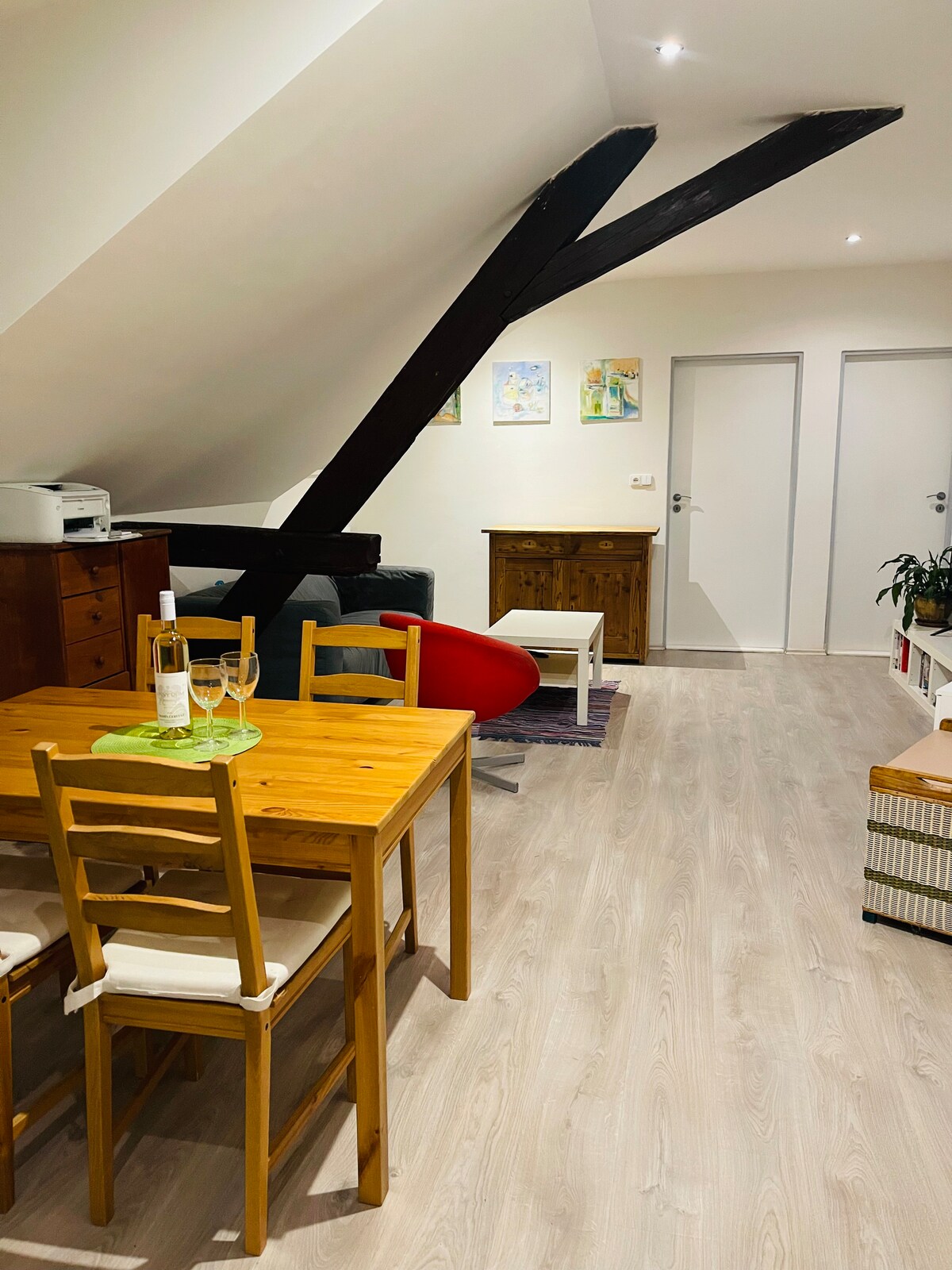 Ubytujte se v prosluněném apartmánu s úžasným výhledem na řeku. Byt je v centru města, situován v klidném místě, kde vás nebude ráno nikdo budit. Nabízíme moderní ubytování v apartmánu v prvním patře domu s plně vybavenou kuchyní, koupelnou se sprchovým koutem a útulným obývacím prostorem, ložnicí a pracovnou. K dispozici je boxspring manželská postel a rozkládací pohovka, kde se pohodlně vyspí další 2 osoby.