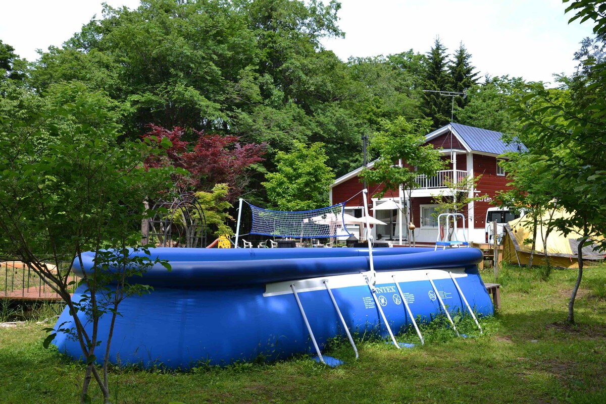 [Gardens Resort] Chalet Building, Burning Fire, BBQ, Hiroki Garden, Pond, River, Waterfall, Forest