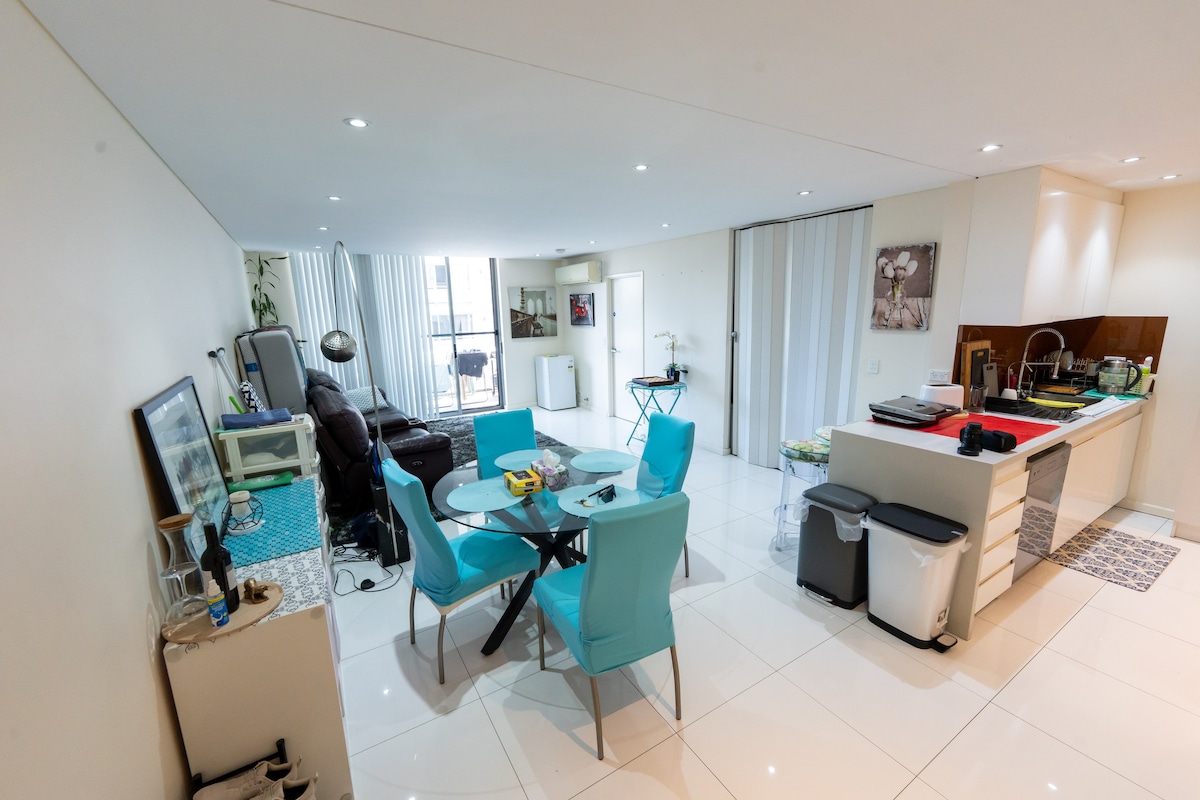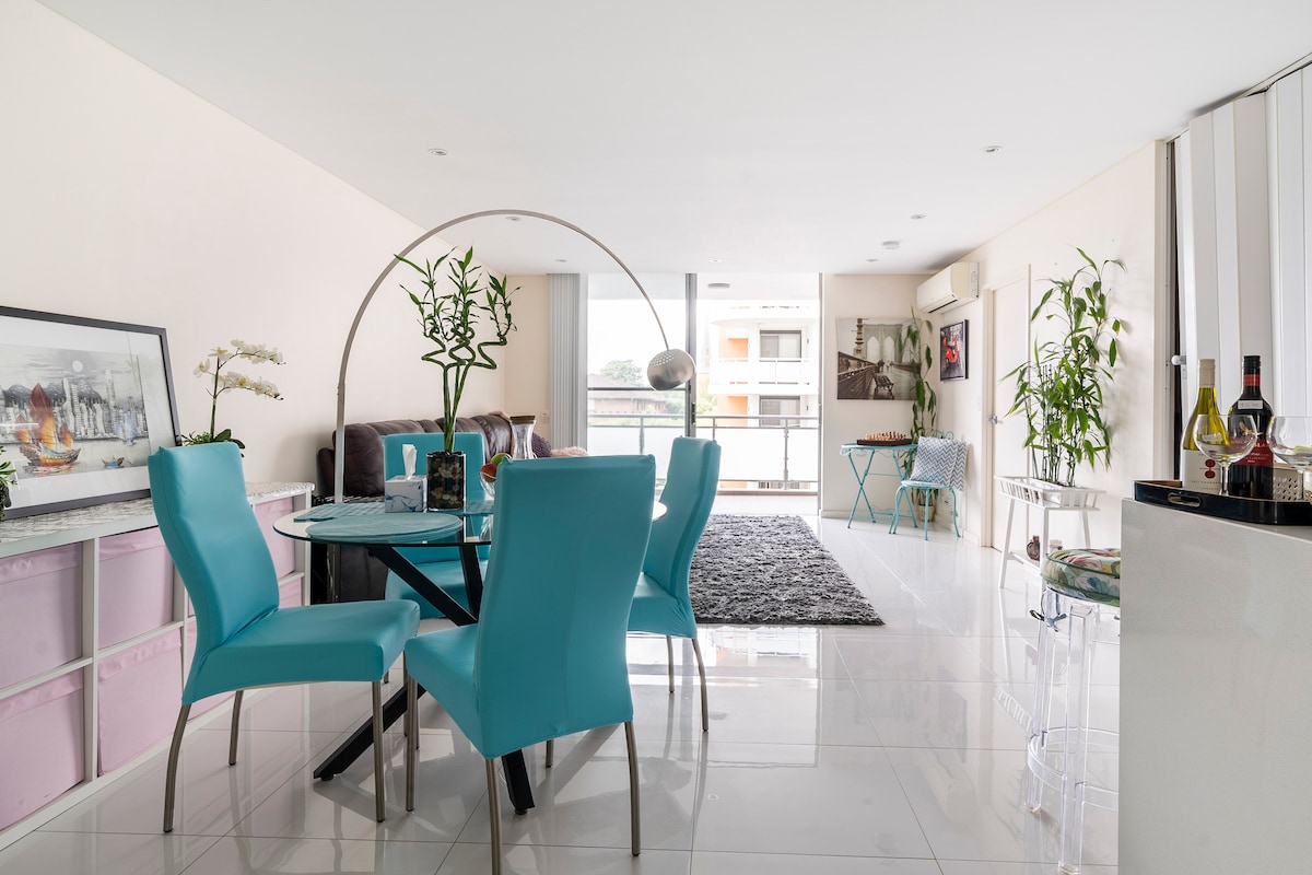 ¡Bienvenido a tu nuevo oasis en el Parque Olímpico de Sídney! Este moderno apartamento con vista a la ciudad ofrece vistas panorámicas de 180 grados y está a solo unos minutos a pie del estadio Accor/Qudos/Engie. Disfruta de amplias salas de estar, una cocina totalmente equipada y cómodos dormitorios, perfectos para relajarte después de explorar la zona o asistir a eventos. ¡Reserva tu estancia y disfruta de lo mejor de Sídney! - Internet NBN ilimitado - Se proporcionan sábanas, toallas y artículos básicos. - Estacionamiento privado. - ¡Juegos de mesa para jugar!