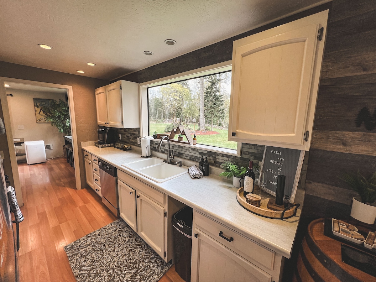 Ubicada entre los árboles de hoja perenne, la cabaña TreeHaus ofrece un refugio forestal rústico y acogedor en Olympic Holiday Haus. Este espacio de estilo cabaña ofrece un lugar tranquilo para relajarse, además de acceso compartido a la bañera de hidromasaje de agua salada bajo los cedros, una sauna seca personalizada, un espacio para reuniones con chimenea, una cocina y un bar cubiertos al aire libre, zonas en el patio trasero y una sala de juegos independiente. Ten en cuenta que esta cabaña rústica no incluye ducha.