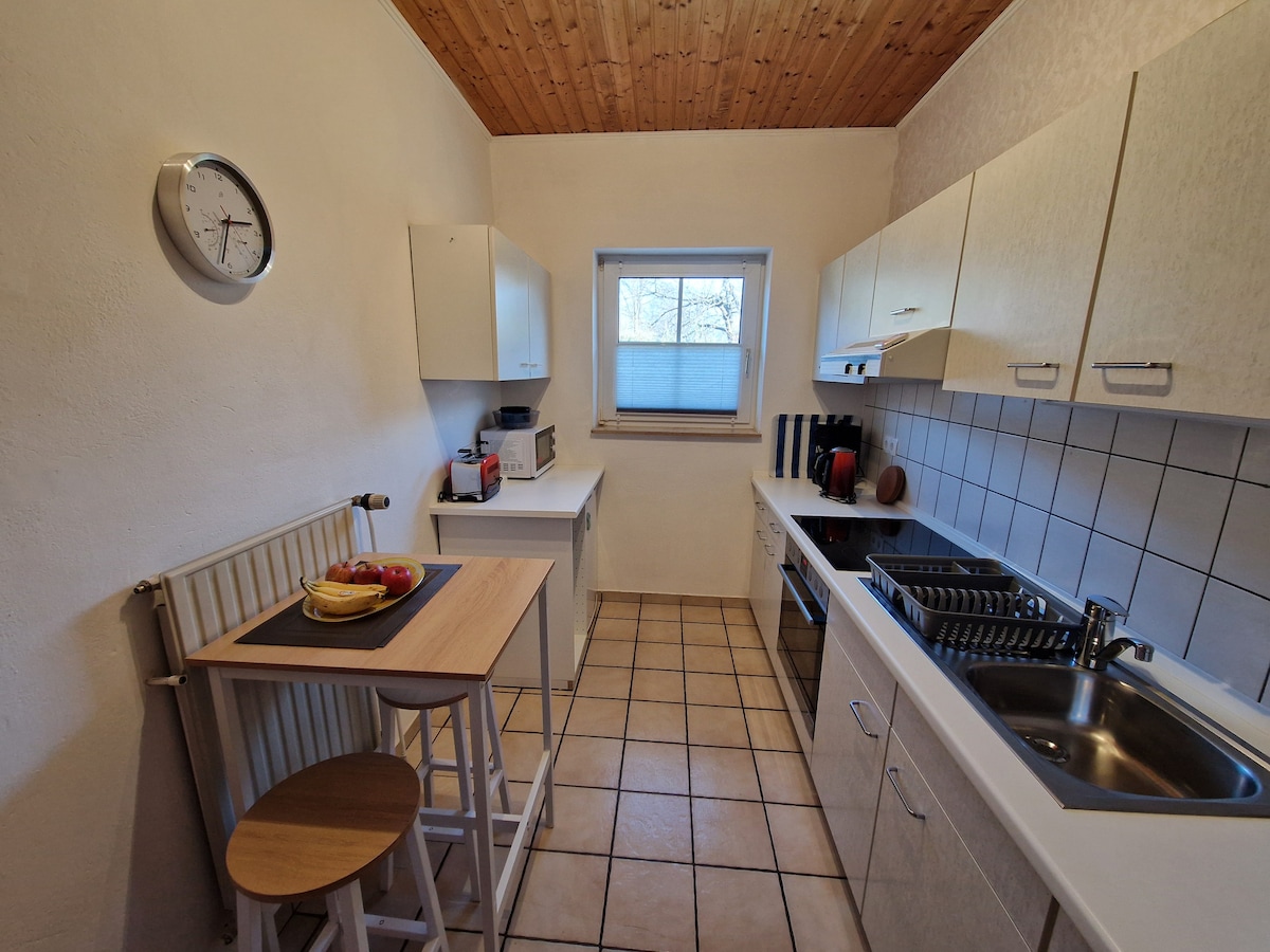 El apartamento amueblado con mucho cariño (unos 70 m²) se encuentra en el primer piso de una antigua casa con entramado de madera. Todo el apartamento fue renovado en 2020 y decorado en un estilo rústico moderno. La ubicación en las afueras y las numerosas ventanas permiten disfrutar de las vistas a los campos, bosques y prados y, en las noches despejadas, se puede admirar un cielo estrellado especial. Hay un gran jardín cuidadosamente diseñado, asientos al aire libre y aparcamiento con cerradura para bicicletas.