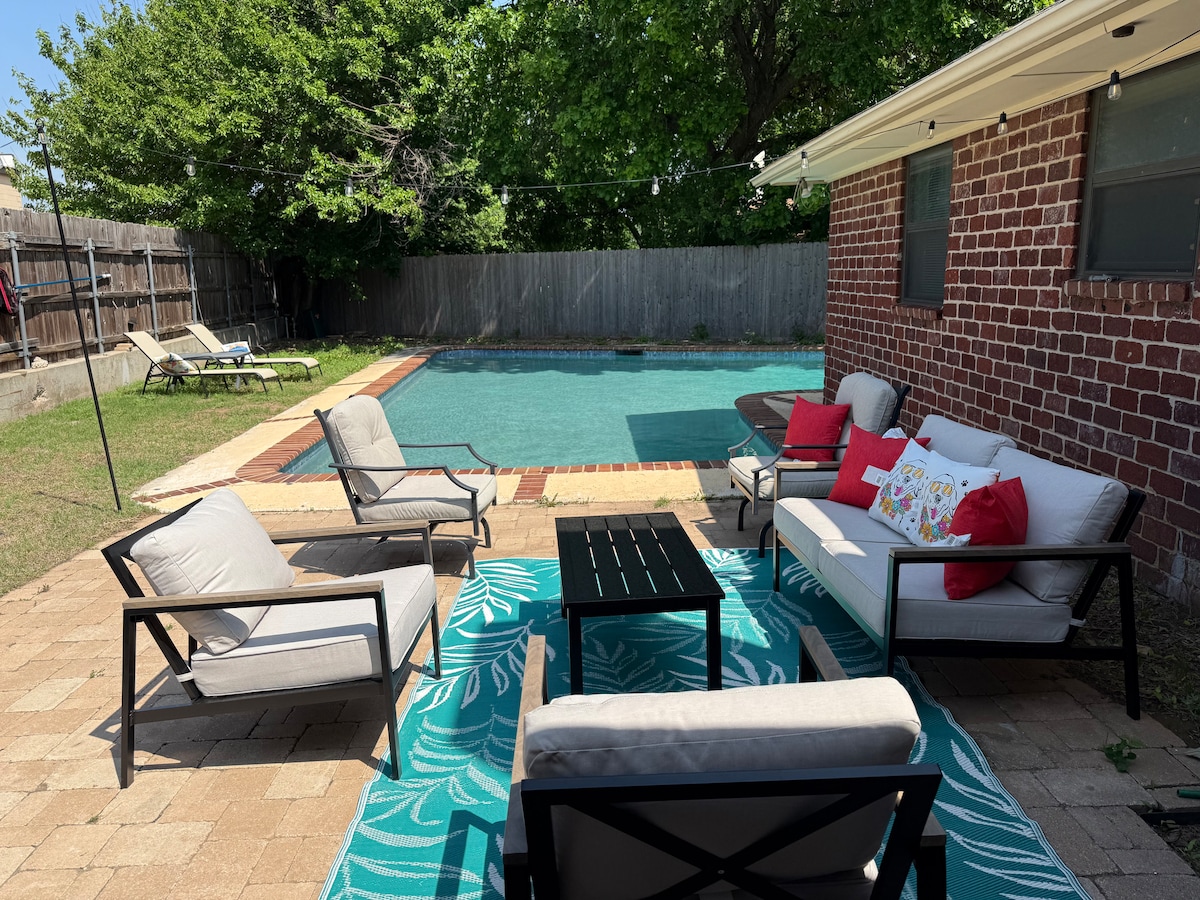 Esta moderna casa decorada inspirada en Palm Springs se encuentra en West Norman. Relájate en tu propio oasis privado. En verano, tómate una copa mientras descansas junto a la piscina o, en los meses más fríos, disfruta de una conversación alrededor de la hoguera. Disfruta del café por las mañanas en el patio trasero privado. La ubicación del lado oeste es difícil de superar; con fácil acceso a la I-35 y muchas tiendas y restaurantes cercanos. Esta casa fue recientemente remodelada por completo con un toque divertido y moderno que estamos seguros de que disfrutarás.
