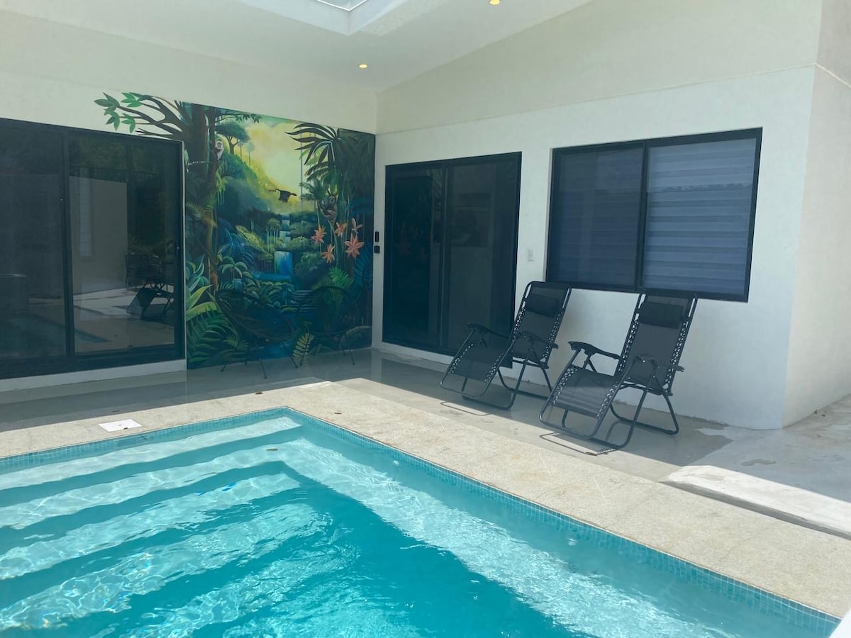 Casa Art Gecko, alojamiento tropical con piscina grande.