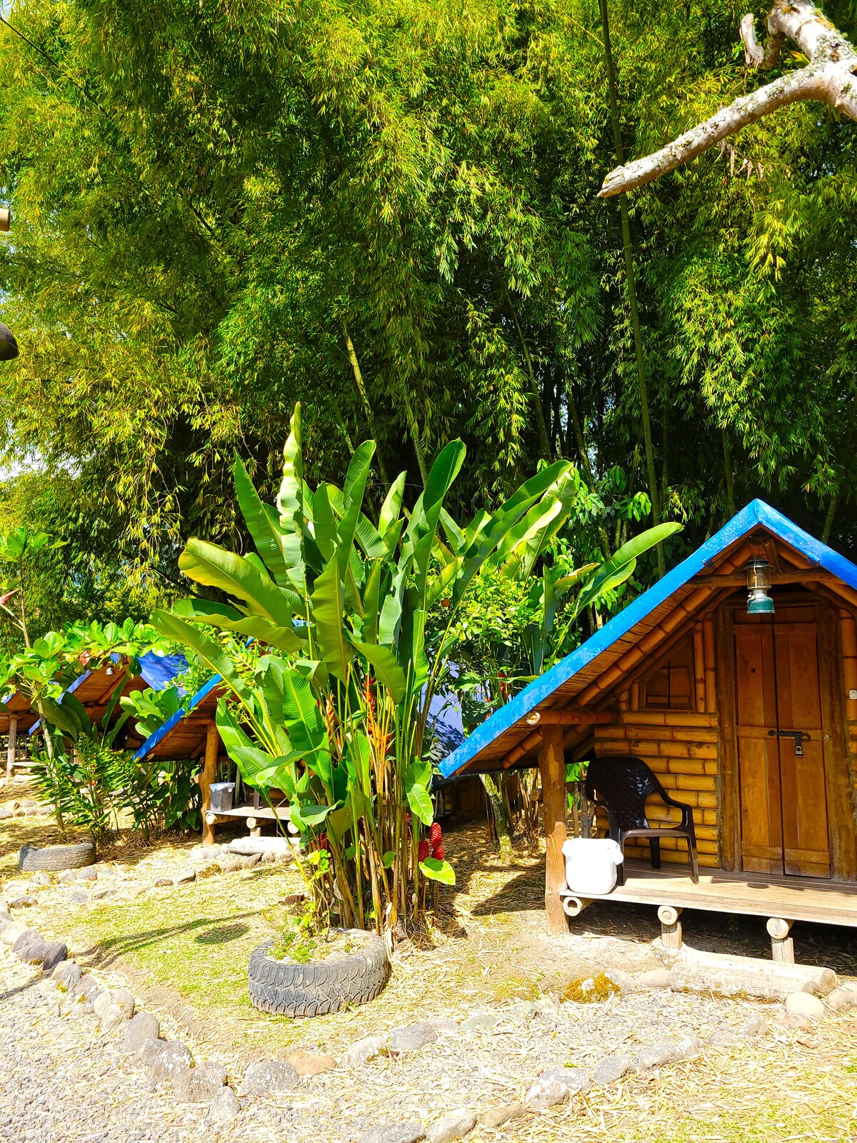 Glamping en medio de los bosques de Boquía en Salento Quindío. Ambiente de flora y fauna silvestre. Un glamping en construcción rustica con materiales de la región como la guadua y maderas y en combinación con acabados modernos. Frutas, café, cereales y yogurt gratis durante la estadía. Cerca a ríos, cascadas y rutas para avistamiento de aves. Dotación completa de cocina y equipo para avistamientos de flora y fauna. wifi, agua caliente, parqueadero. Ambiente totalmente privado e independiente.