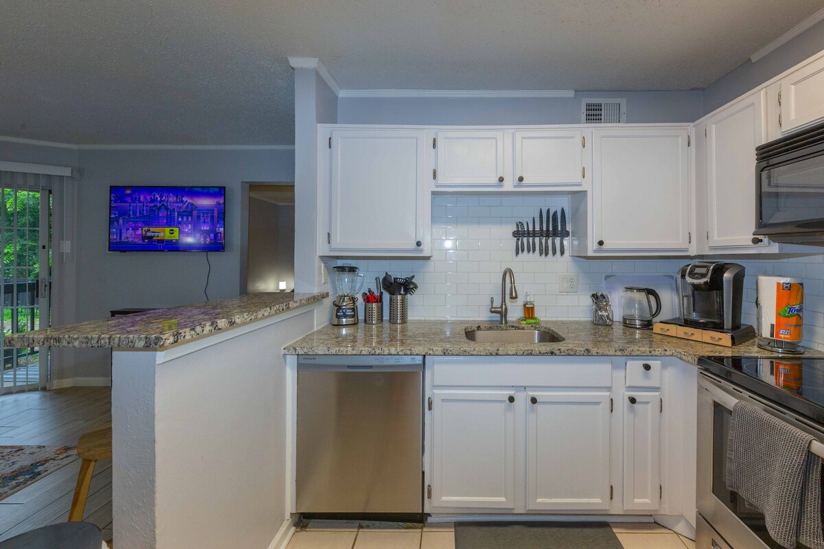Te damos la bienvenida al condominio privado de la planta baja Start Choice en el norte de Dallas. Este condominio de 2 dormitorios y 2 baños tiene gabinetes modernos, camas cómodas, hermosa cocina y baños cómodos. Disfruta de la comodidad de la vida con todo incluido con lavadora y secadora, TV de pantalla ancha, Internet de alta velocidad y dos cómodos espacios de trabajo. Todas las utilidades están incluidas. Hay estacionamiento descubierto gratuito para tu auto y piscina. El condominio está cerca de tiendas, carreteras principales y negocios. Disfruta de tu estancia.