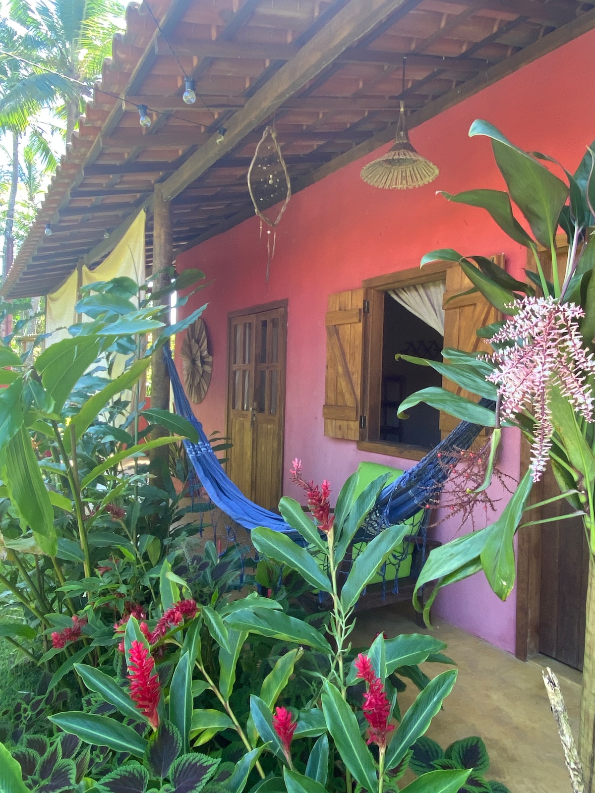 Casa tipo chalet con excelente ubicación, a 3 minutos a pie de la calle principal (Pituba) y a 5-8 minutos a pie de las playas de la ciudad. En la planta baja, sala de estar-cocina bien equipada, baño y dormitorio individual con 2 camas. En el piso superior, suite espaciosa con cama queen + cama individual, armario, aire acondicionado y balcón con vista al Mata Atlántica. Ambiente claro y súper ventilado, patio arbolado y con césped, ducha exterior. Tiene capacidad para 5 personas. Cuenta con TV y WiFi.